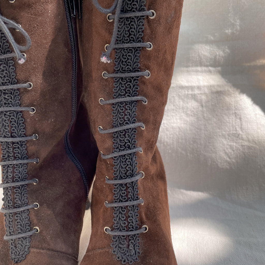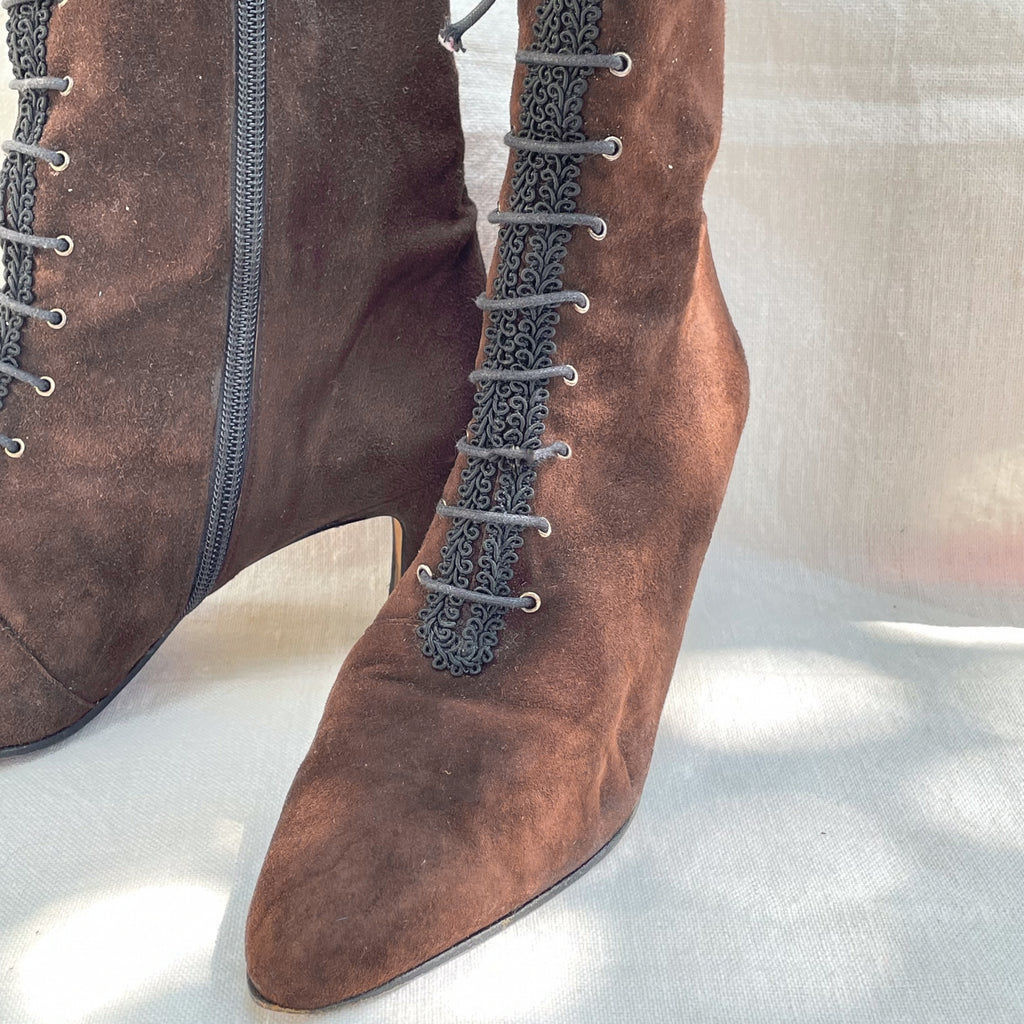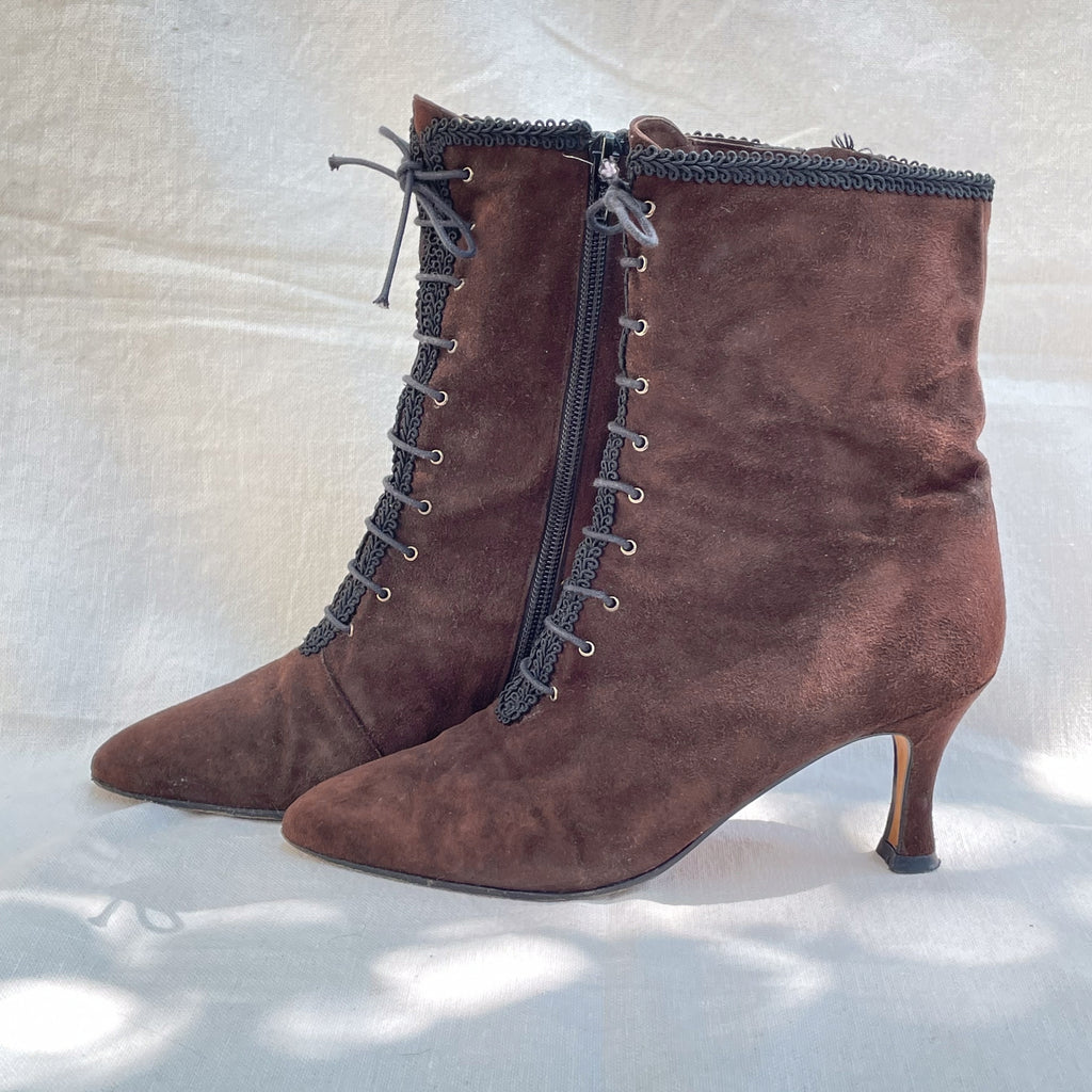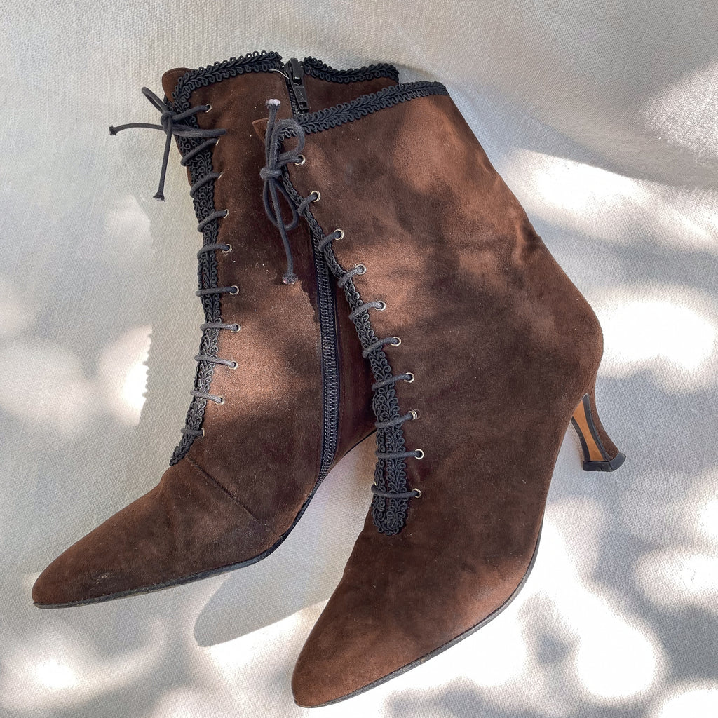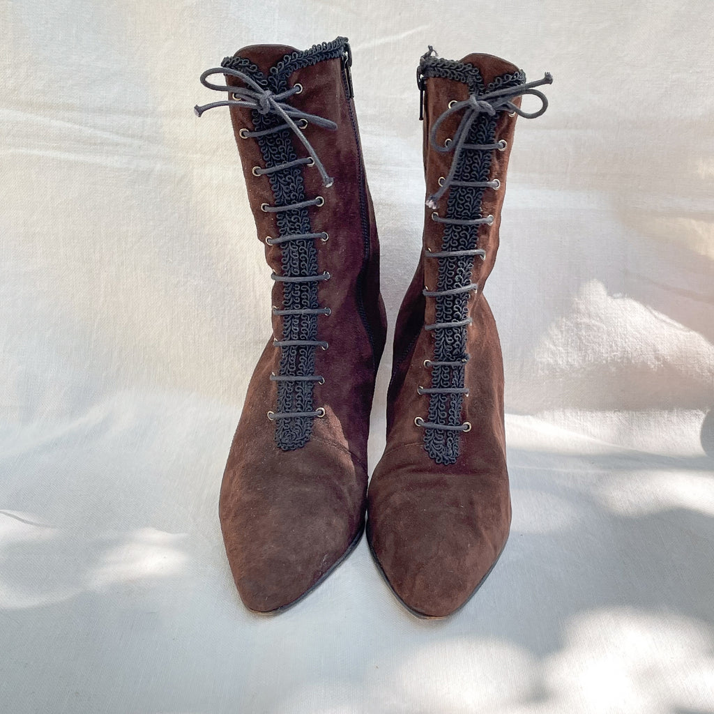 Vintage Brown Suede Granny Ankle Boots, Lace Up Grunge Victorian Style Boots 6.5