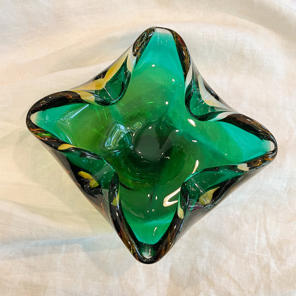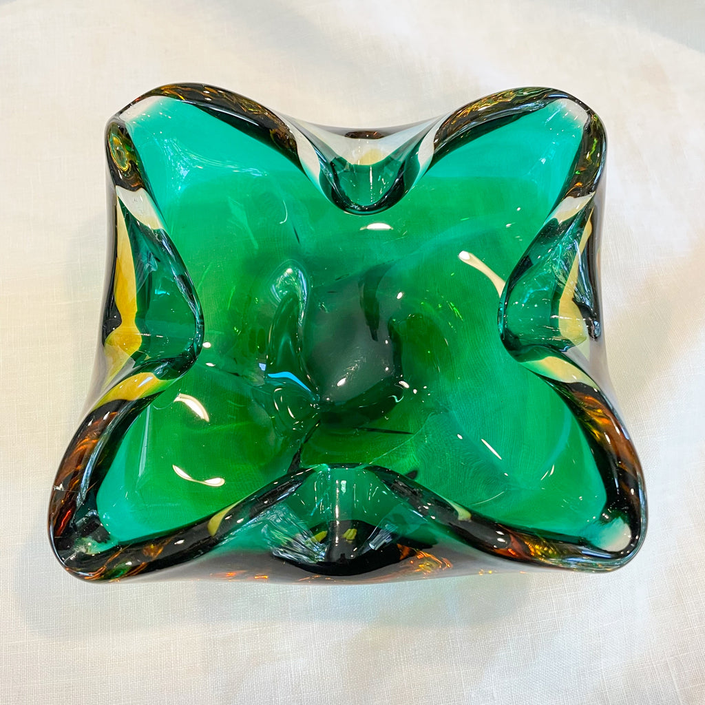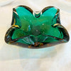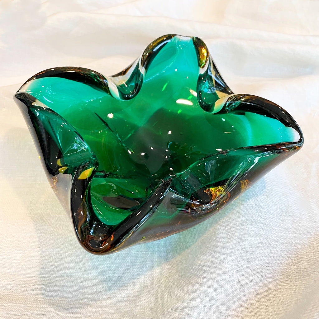 SOLD MCM Vintage Handblown Glass Bowl, Emerald Green/Gold Art Glass