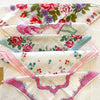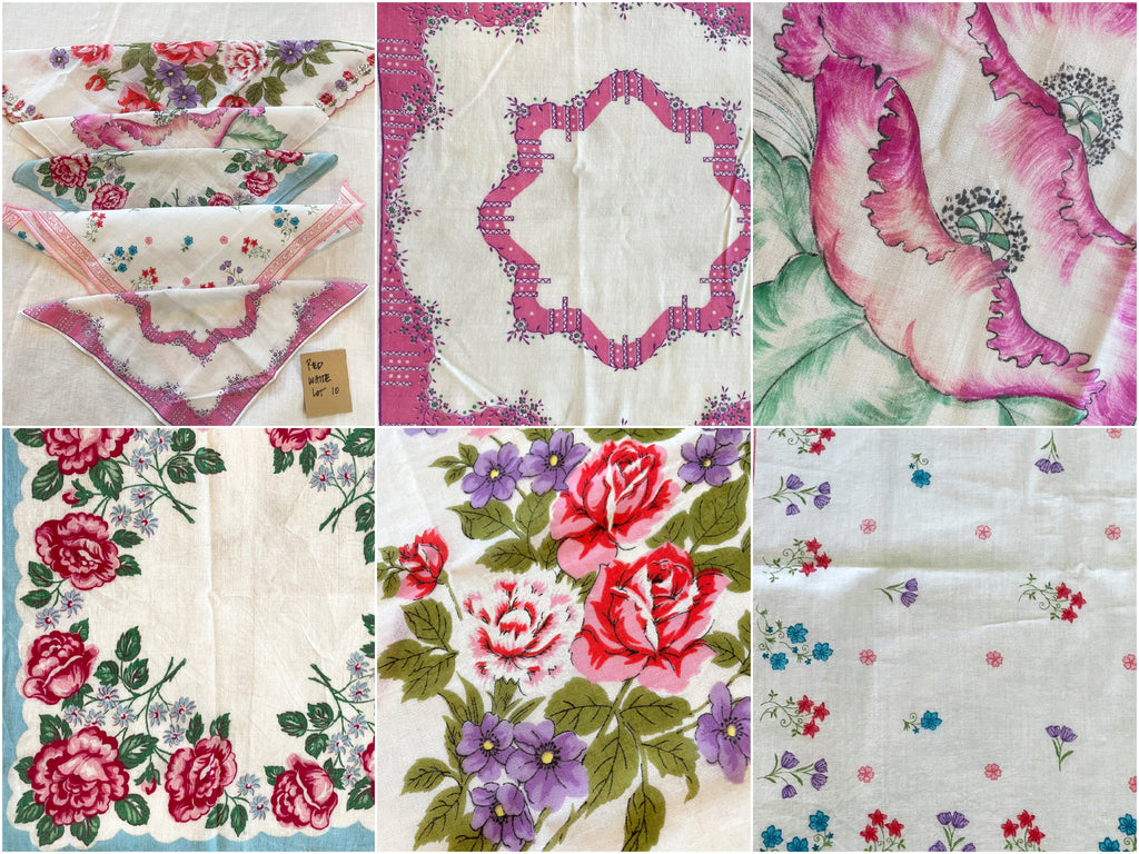 Assorted floral prints, assorted sizes. Assorted edge detailing.