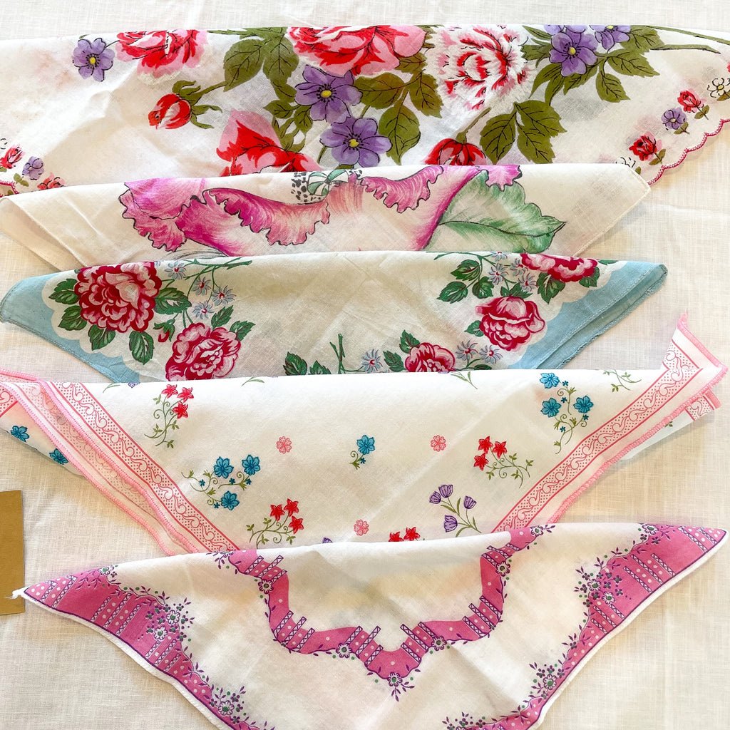 Vintage 40s/50s cotton print handkerchiefs. 5 pieces in this lot.