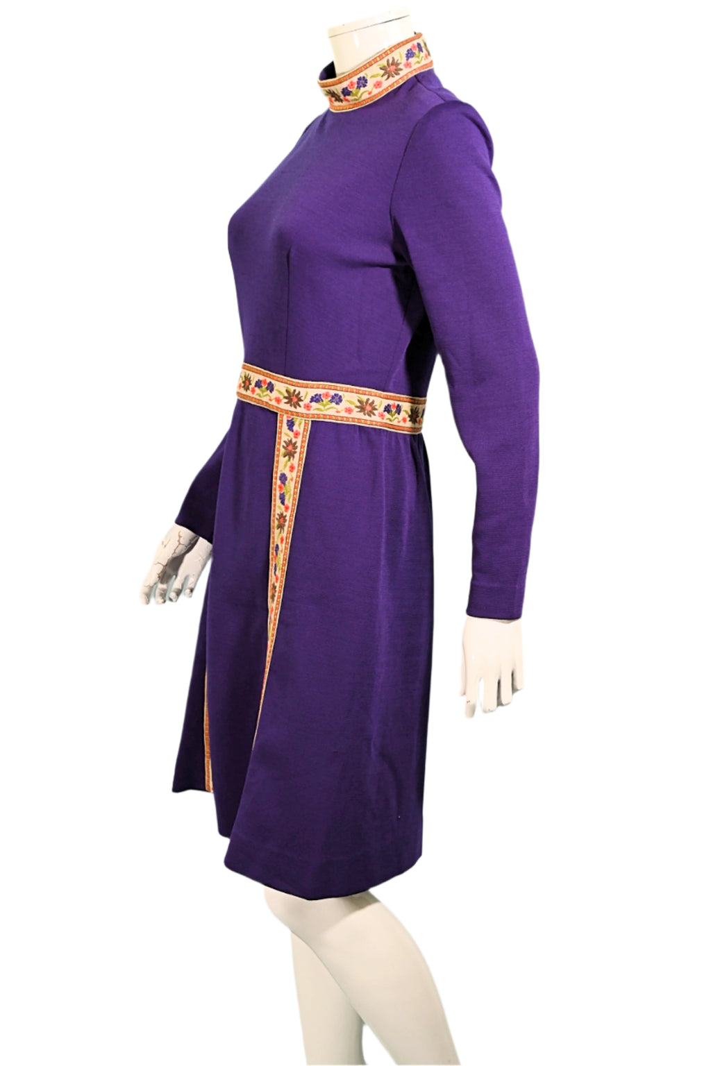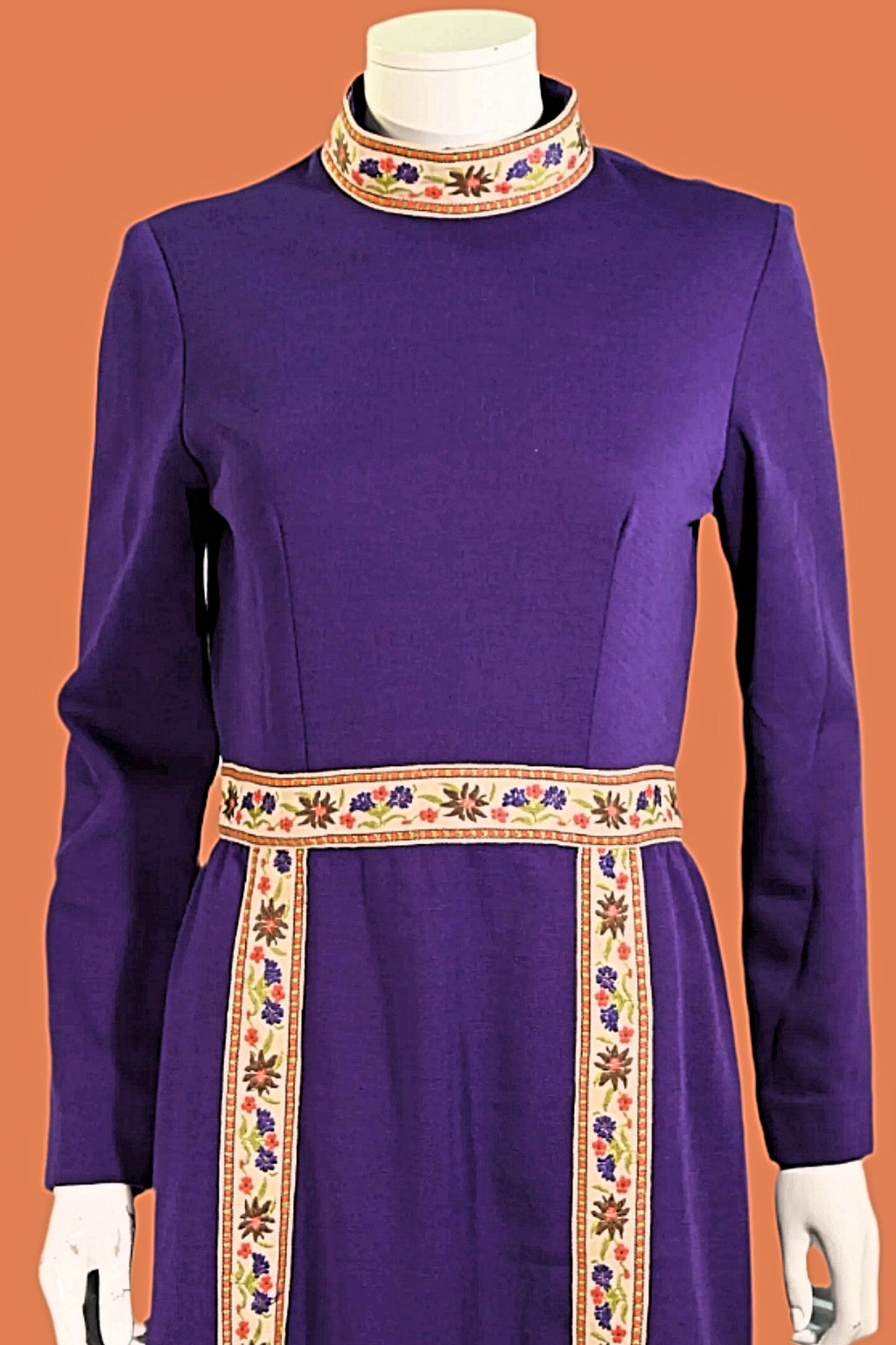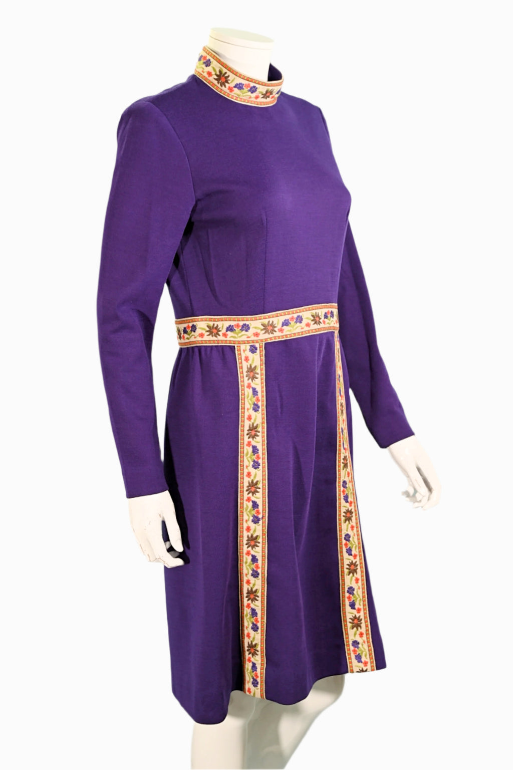 Very pretty deep purple knit dress with high neckline and long sleeves.