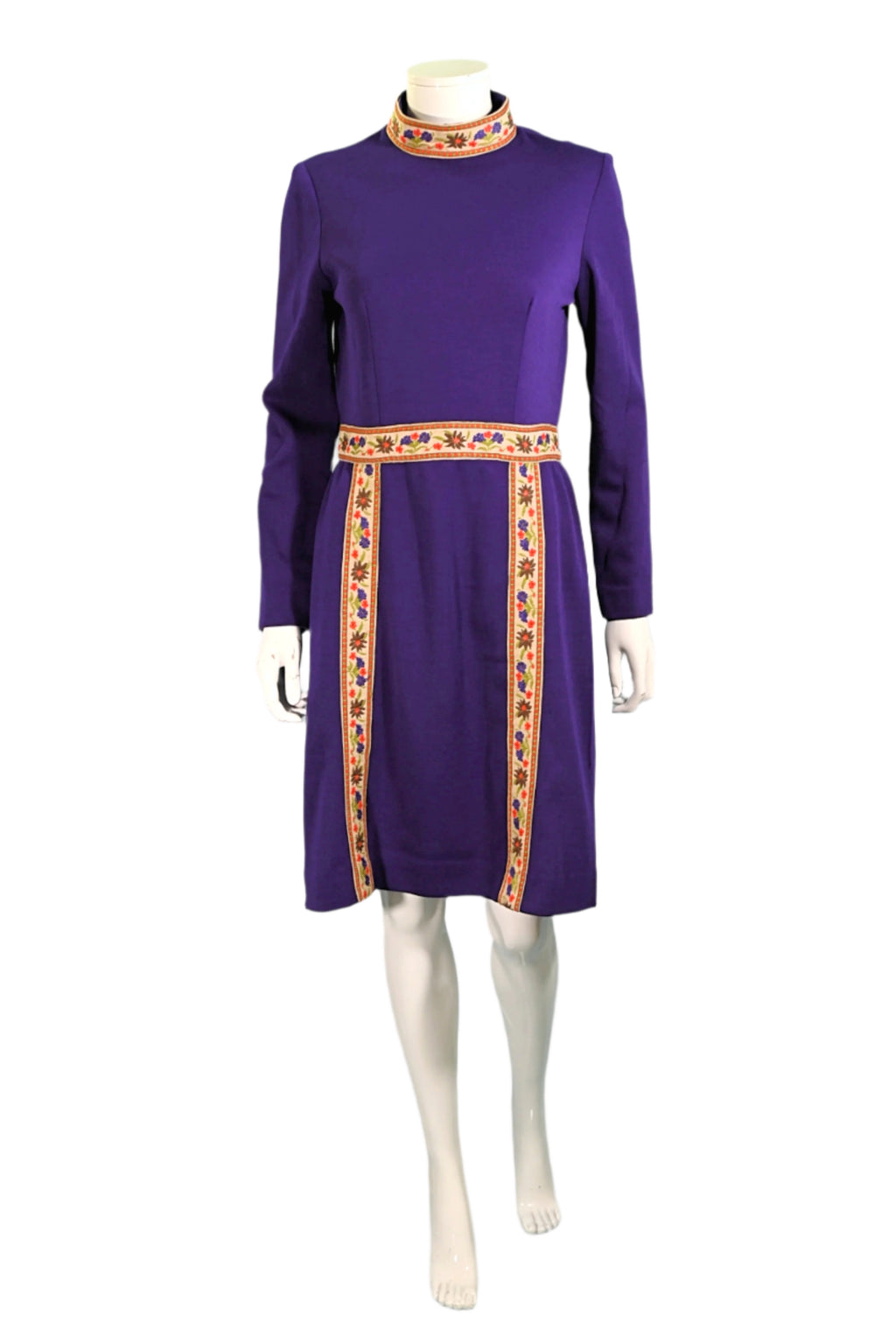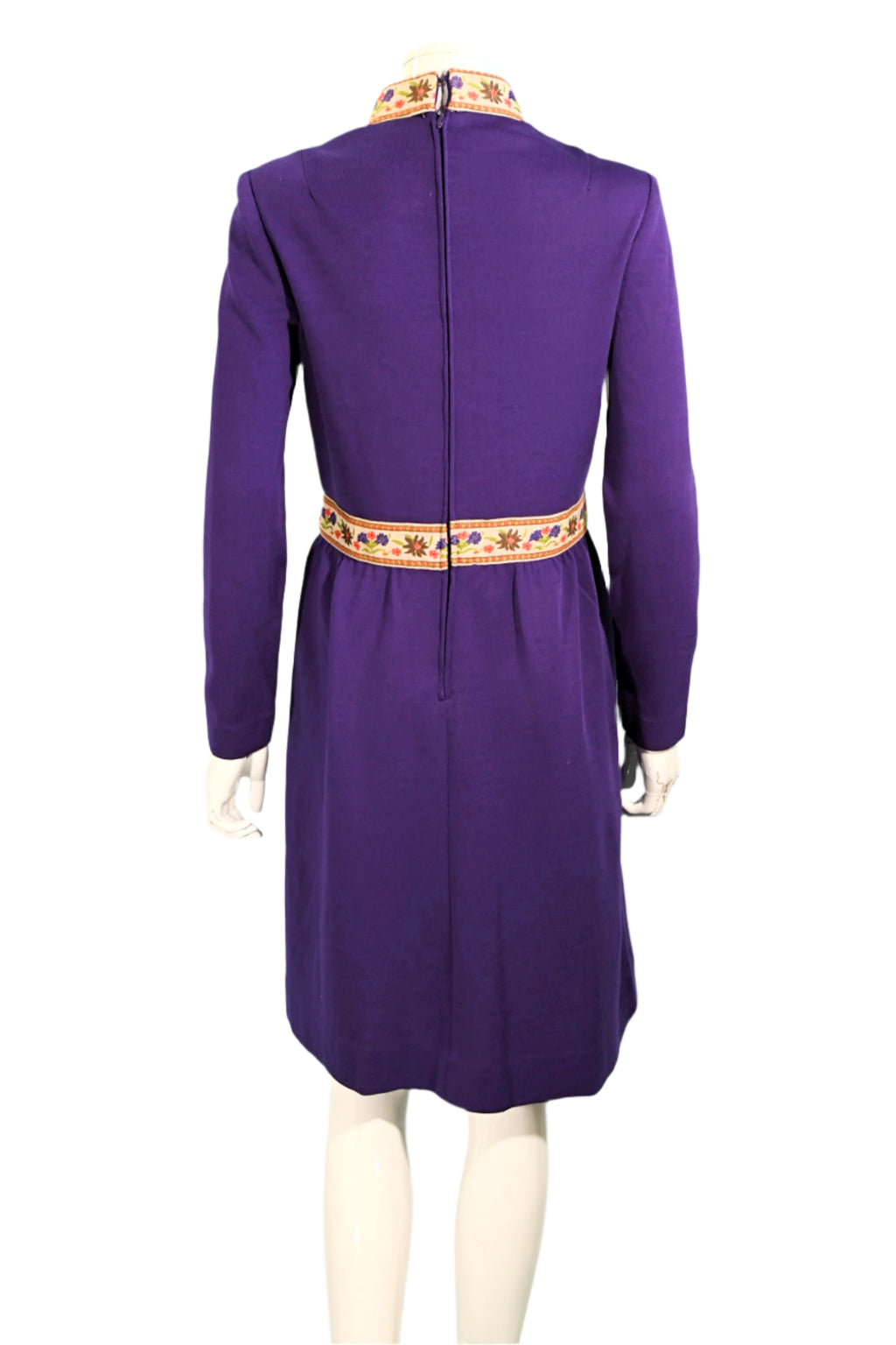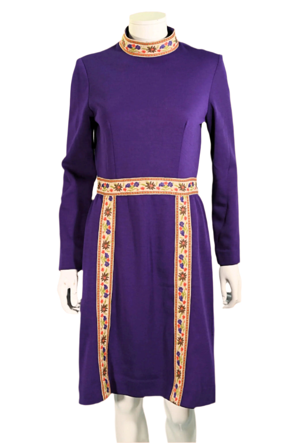 Very pretty deep purple knit dress with high neckline and long sleeves.