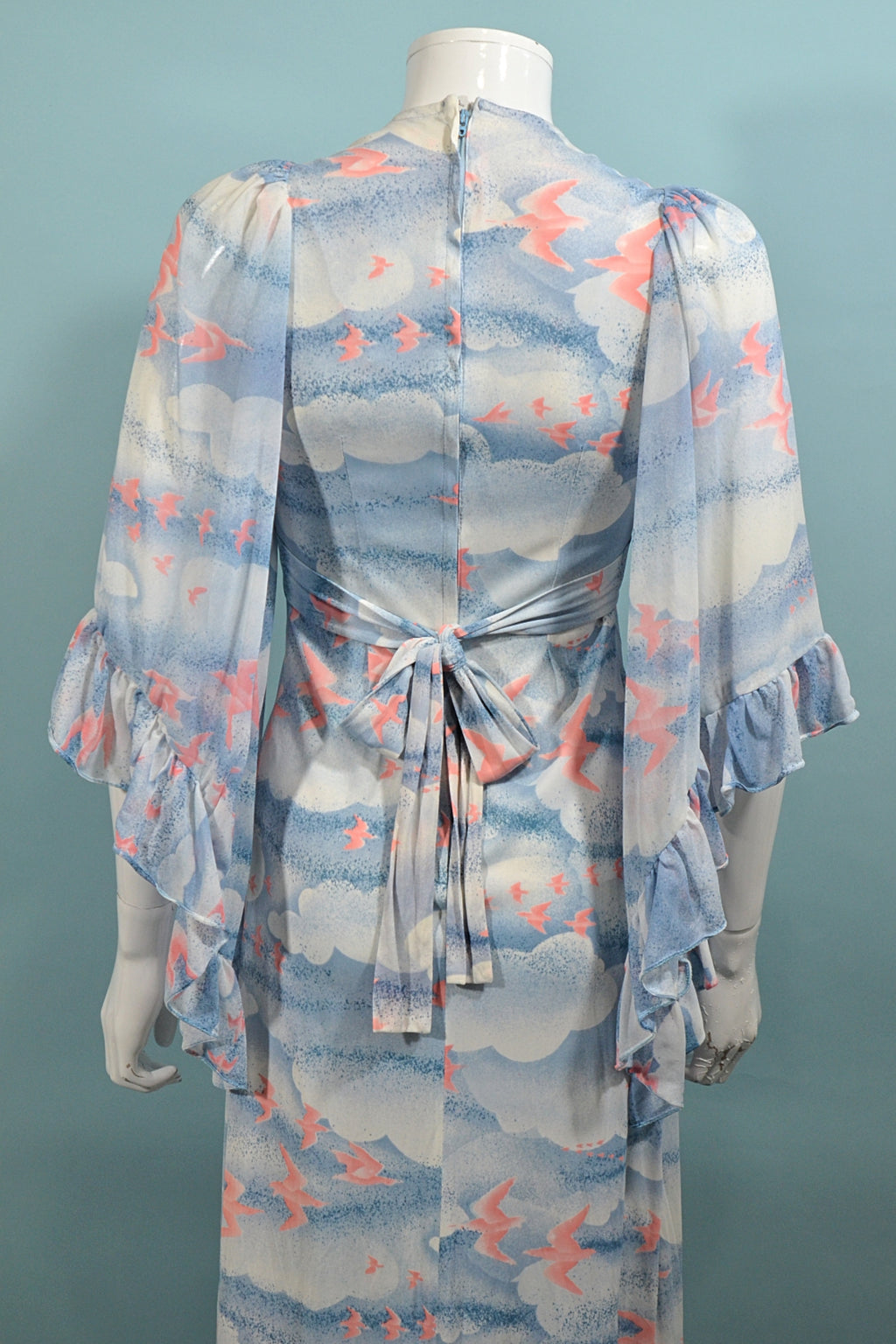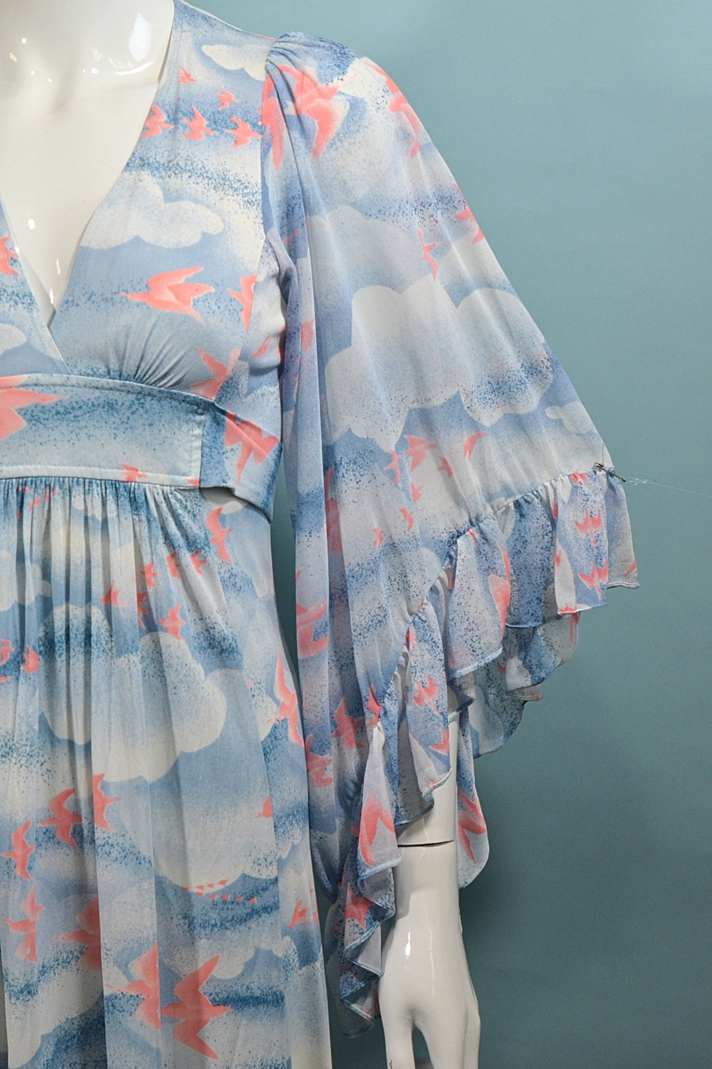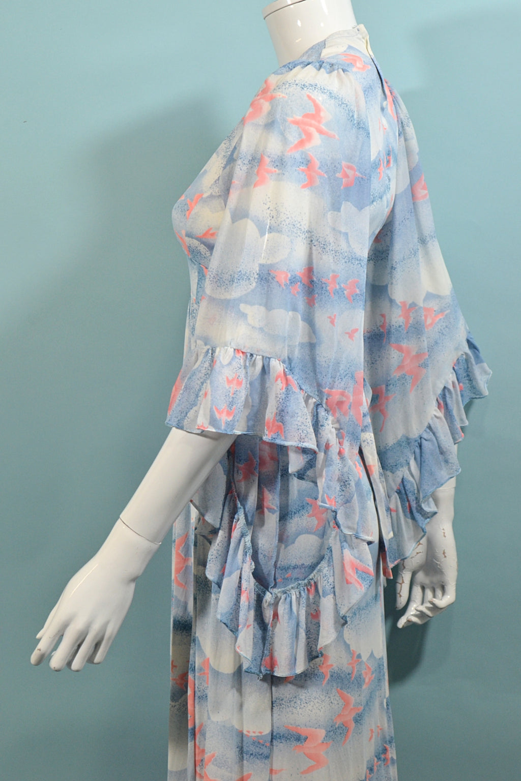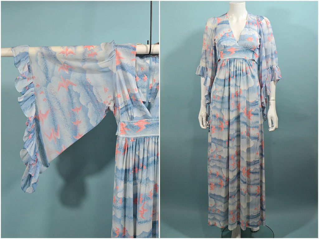 Stunning vintage beauty with full angel sleeves with ruffles.