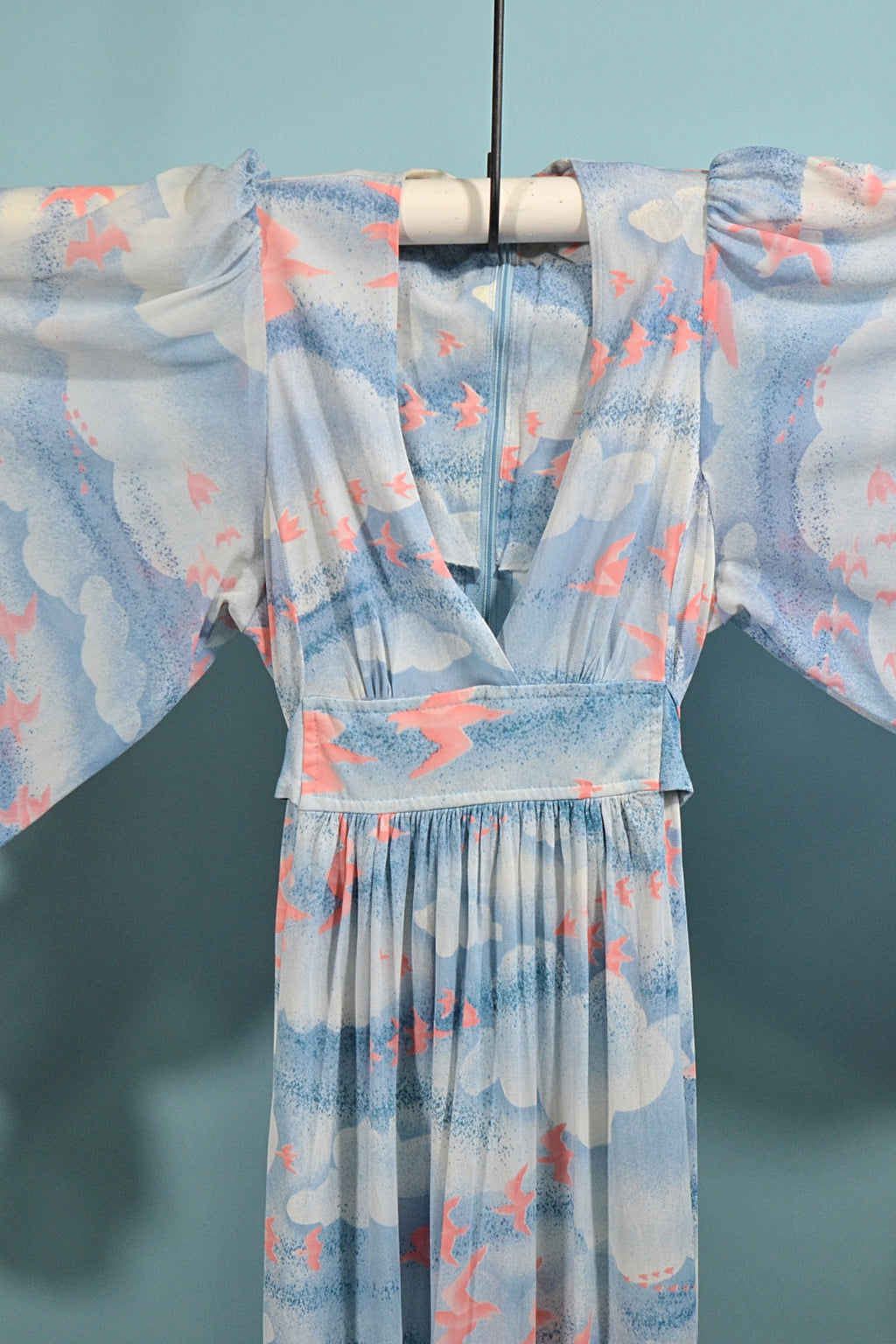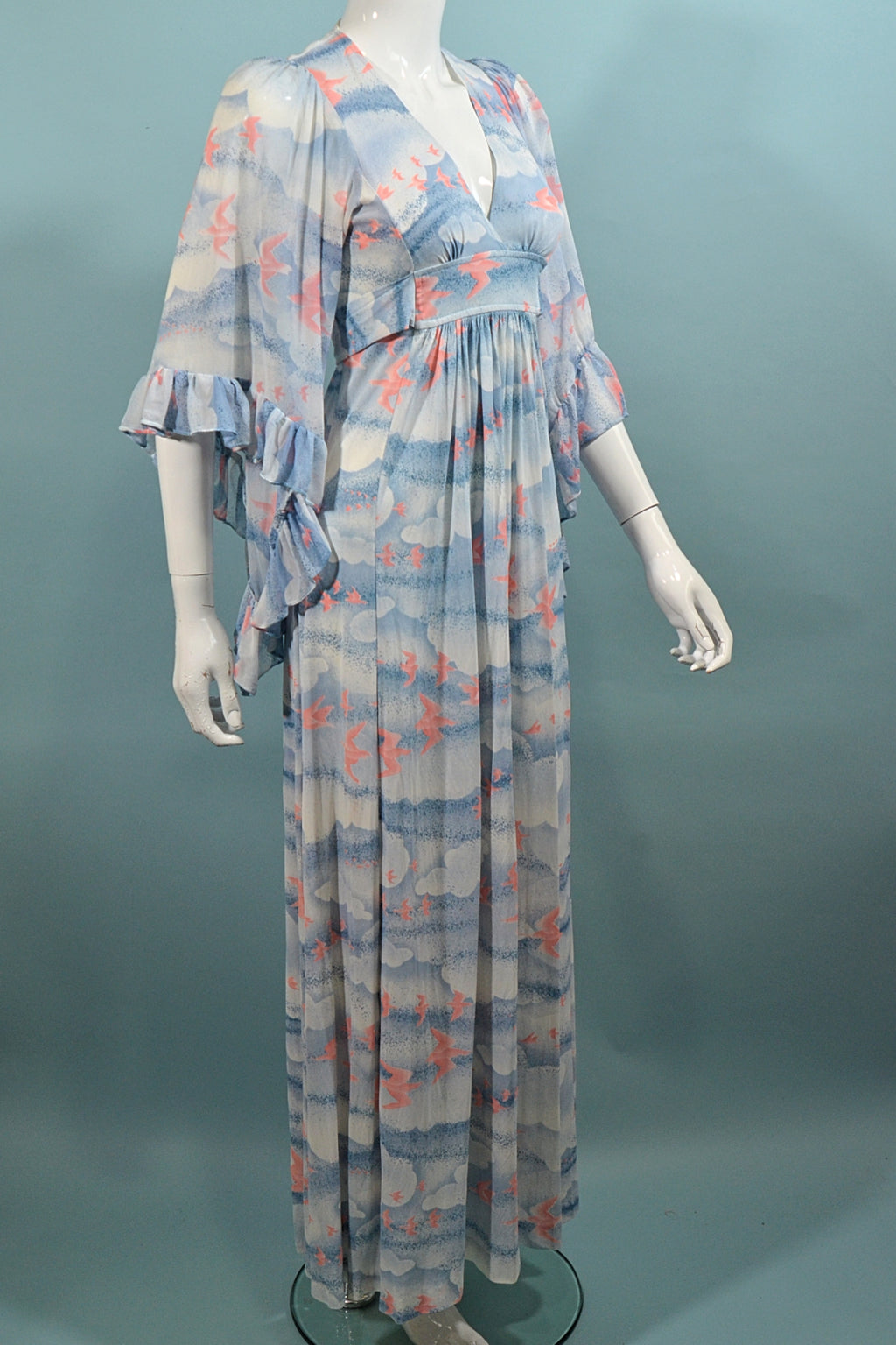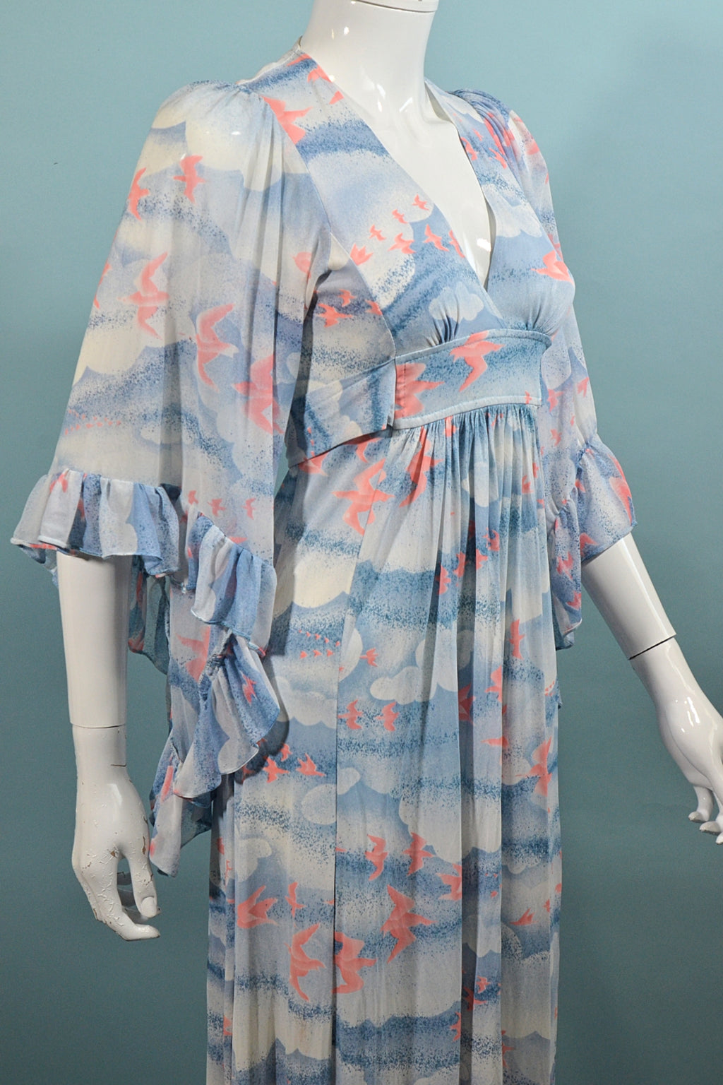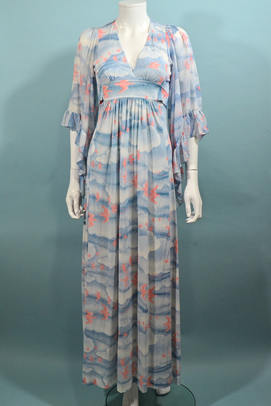 Stunning vintage beauty with full angel sleeves with ruffles.
