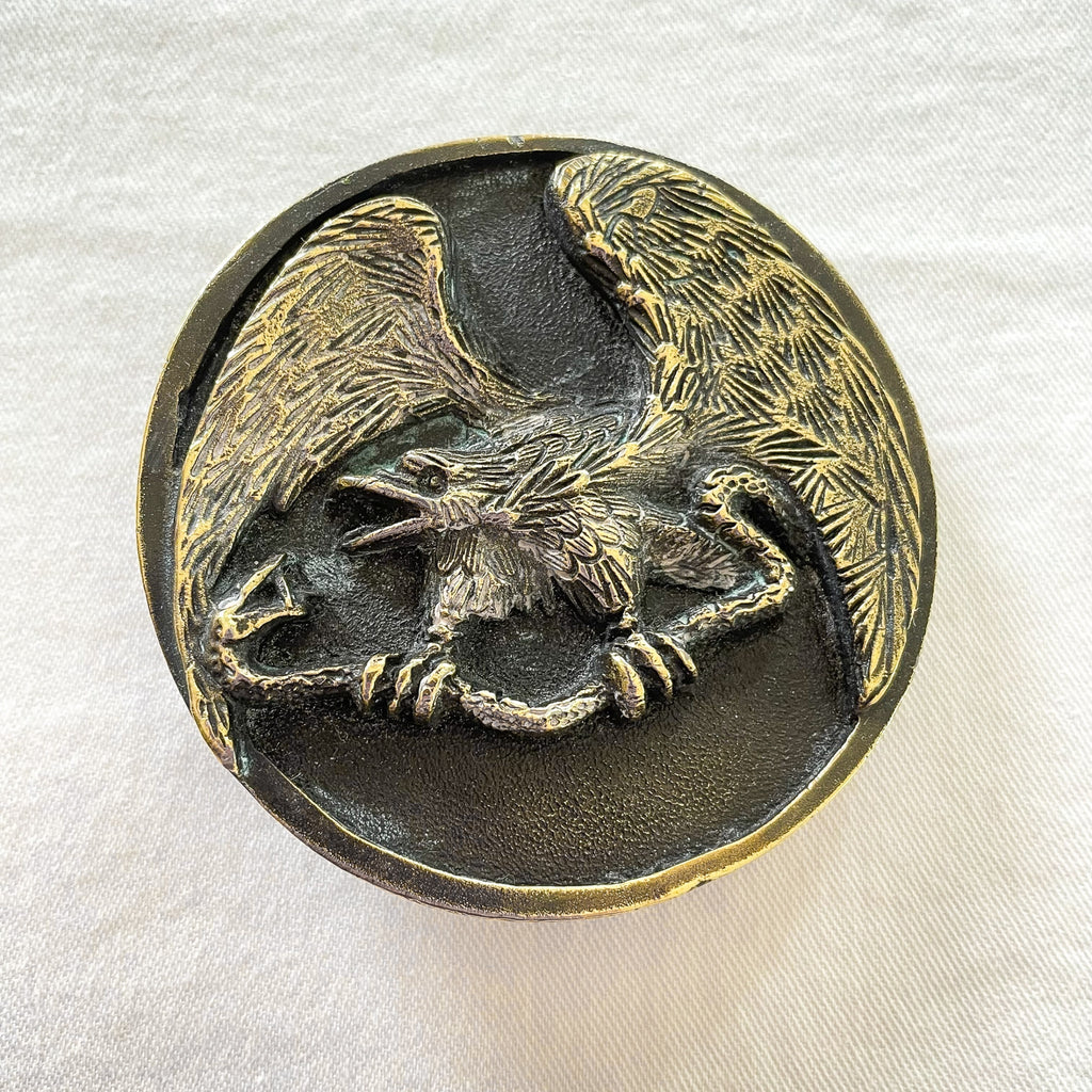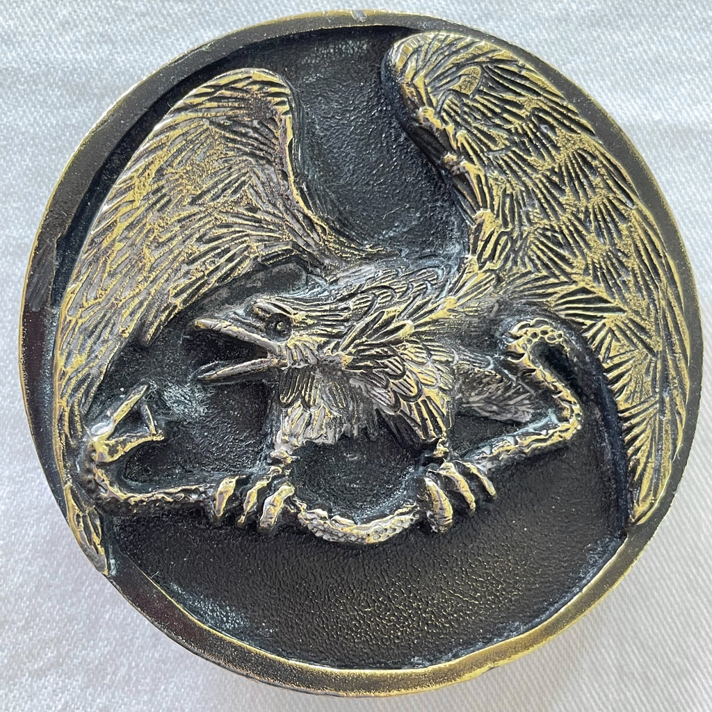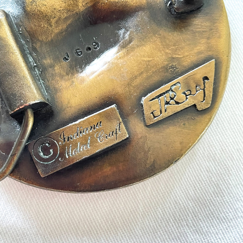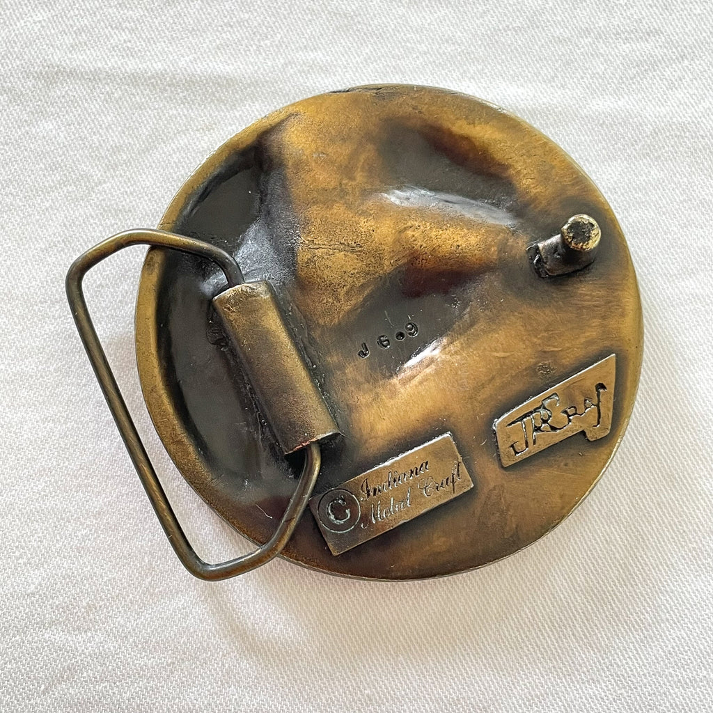 JR Cray Vintage 70s Brass Eagle/Snake Belt Buckle, Indiana Metal Craft 2 3/4" Dia