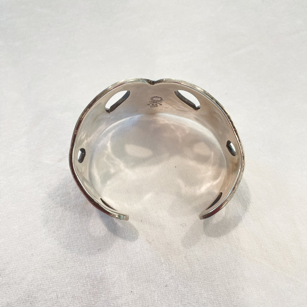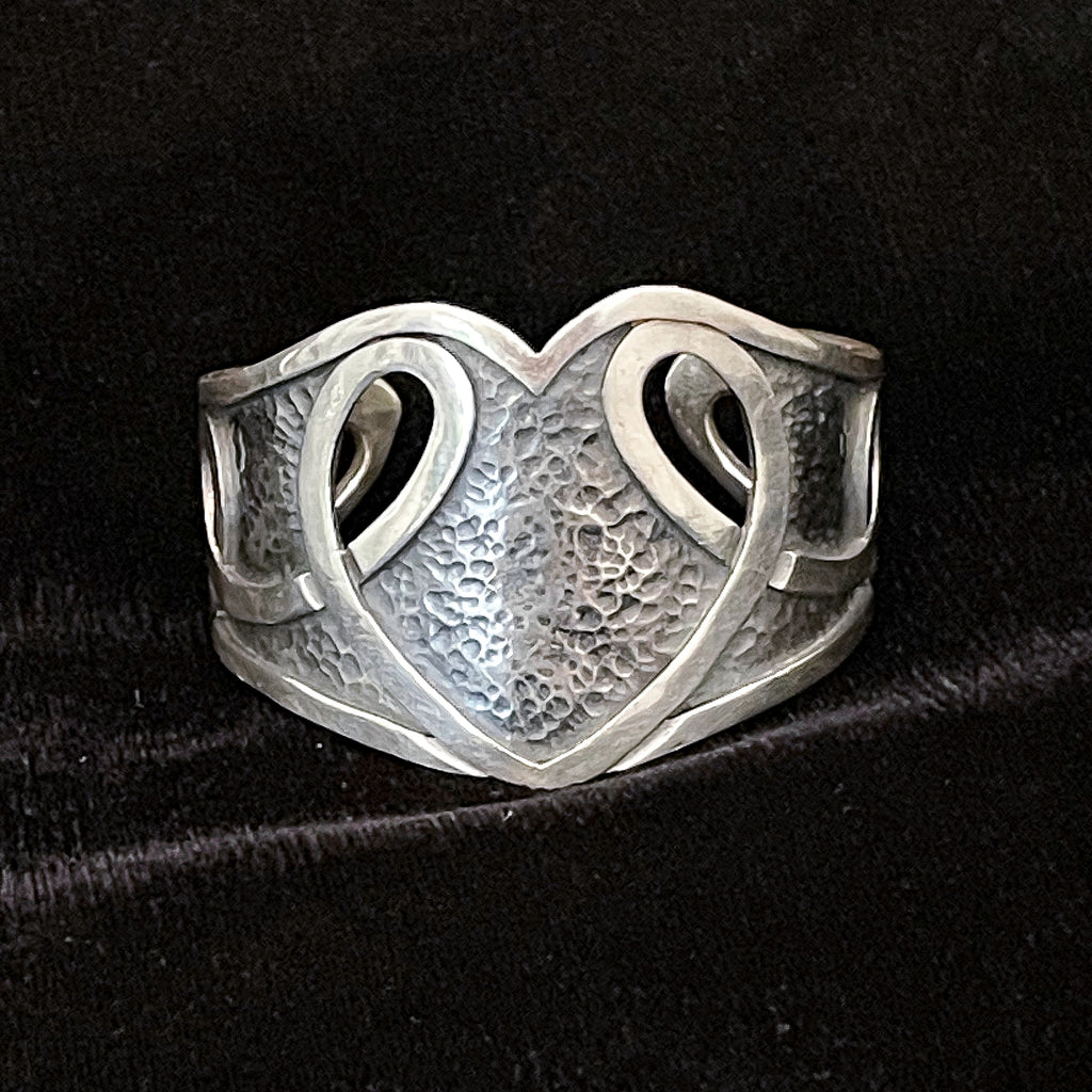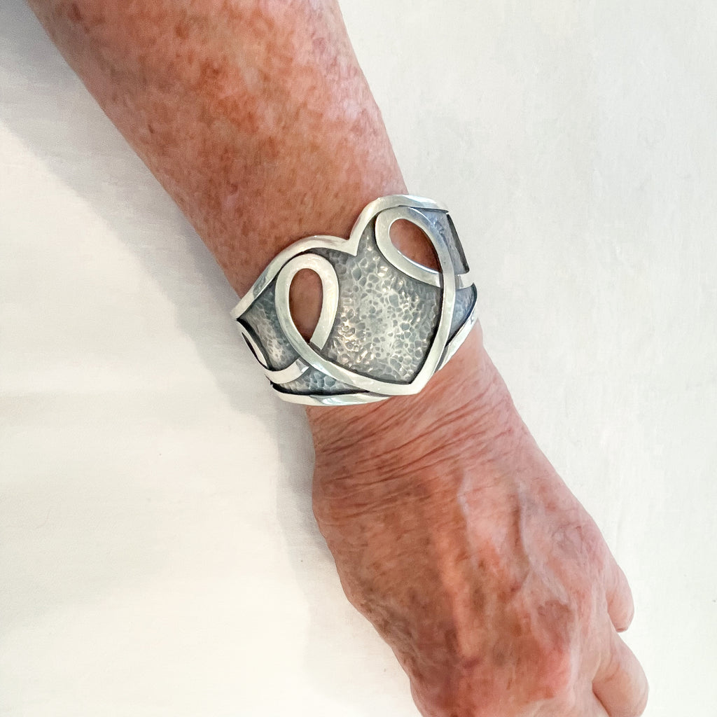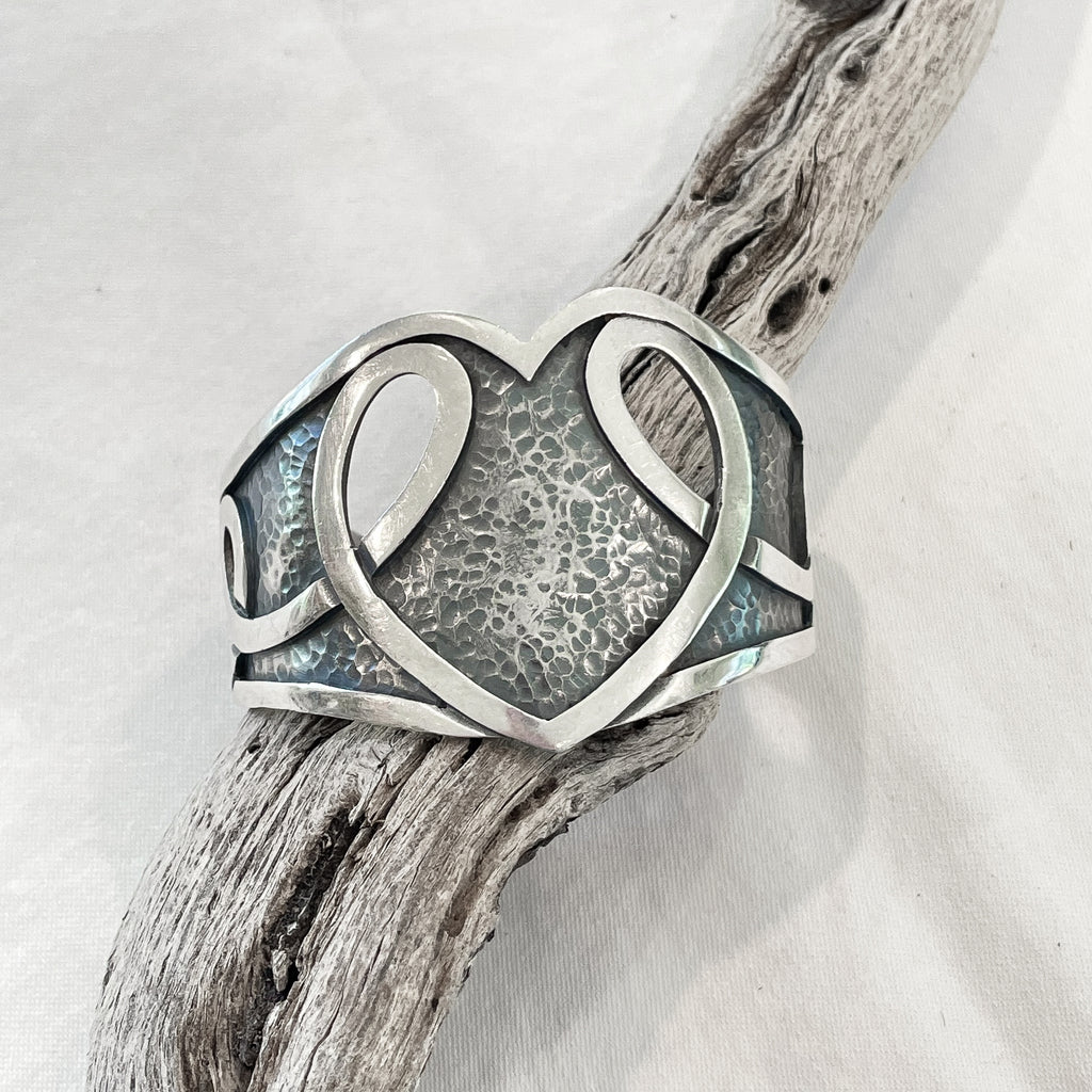 Margot De Taxco Sterling Cuff Heart Bracelet, Hammered & Polished Silver #5195