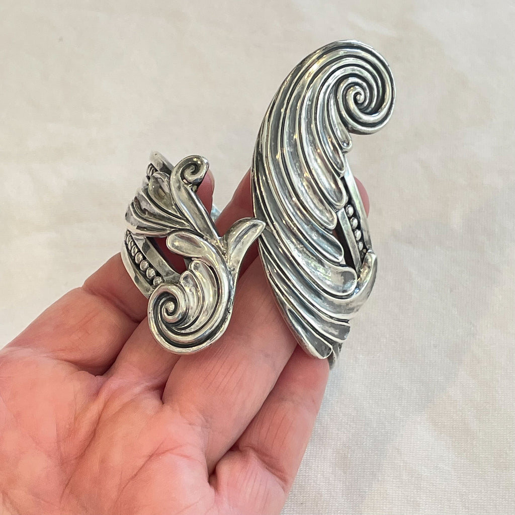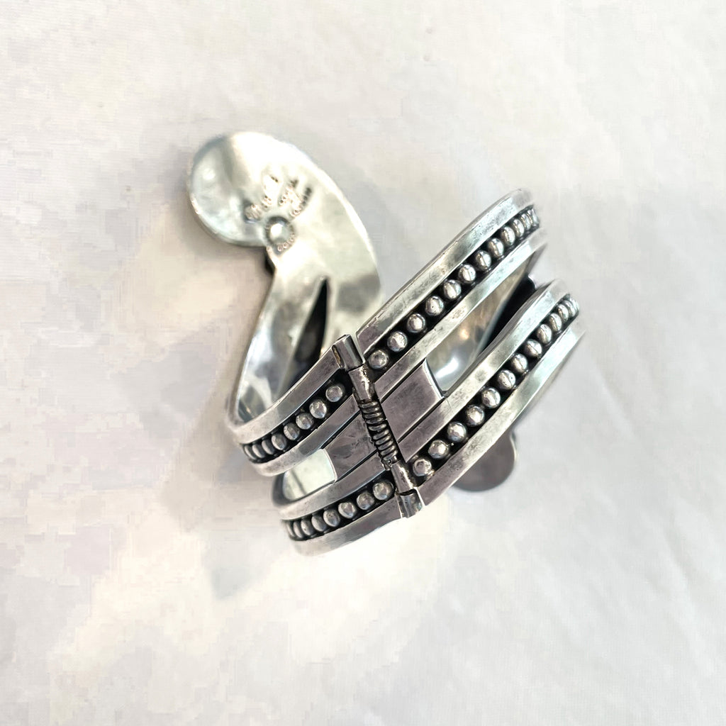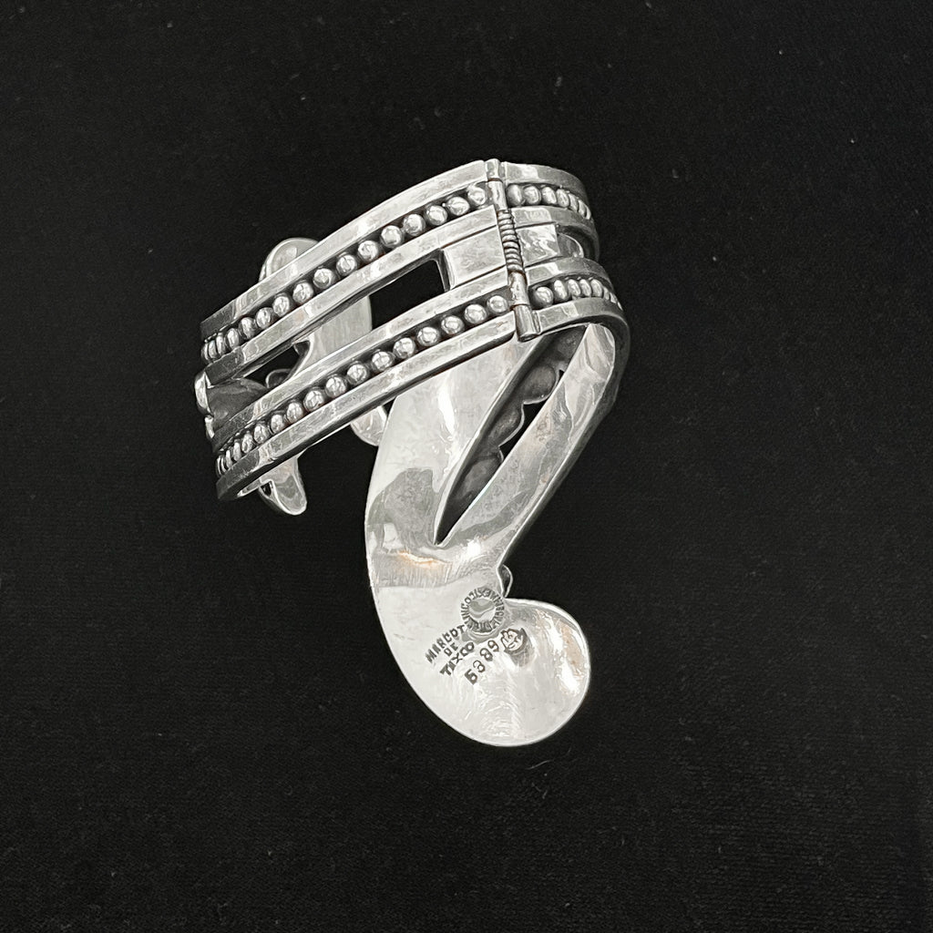 Margot De Taxco sterling silver spring cuff clamper bracelet.