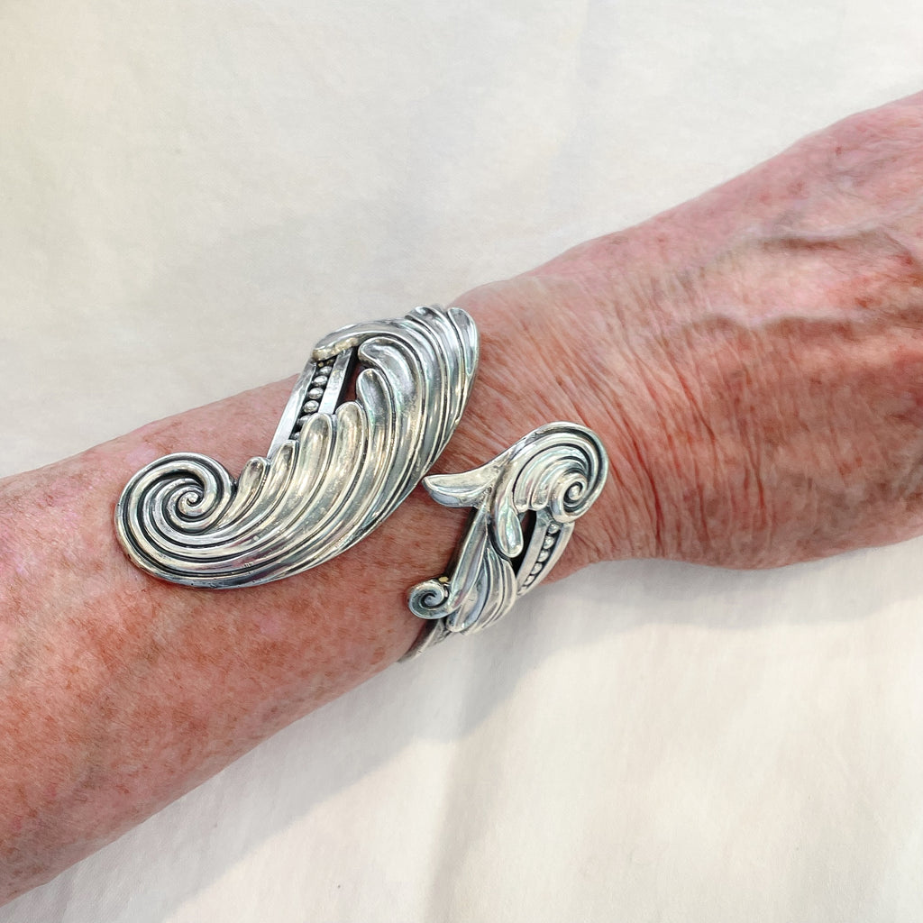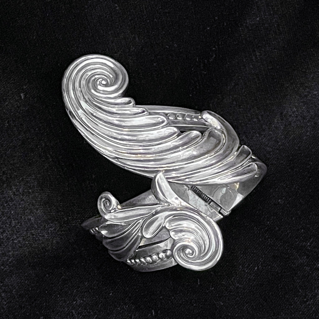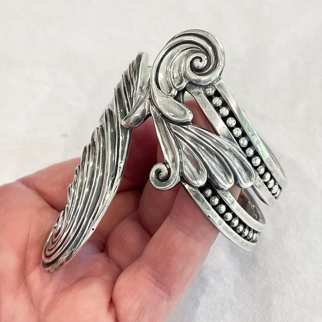 Margot De Taxco sterling silver spring cuff clamper bracelet.