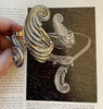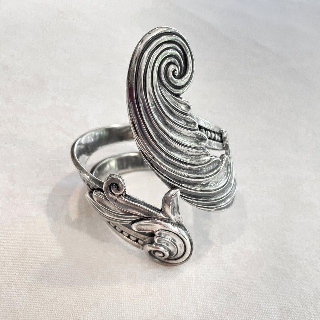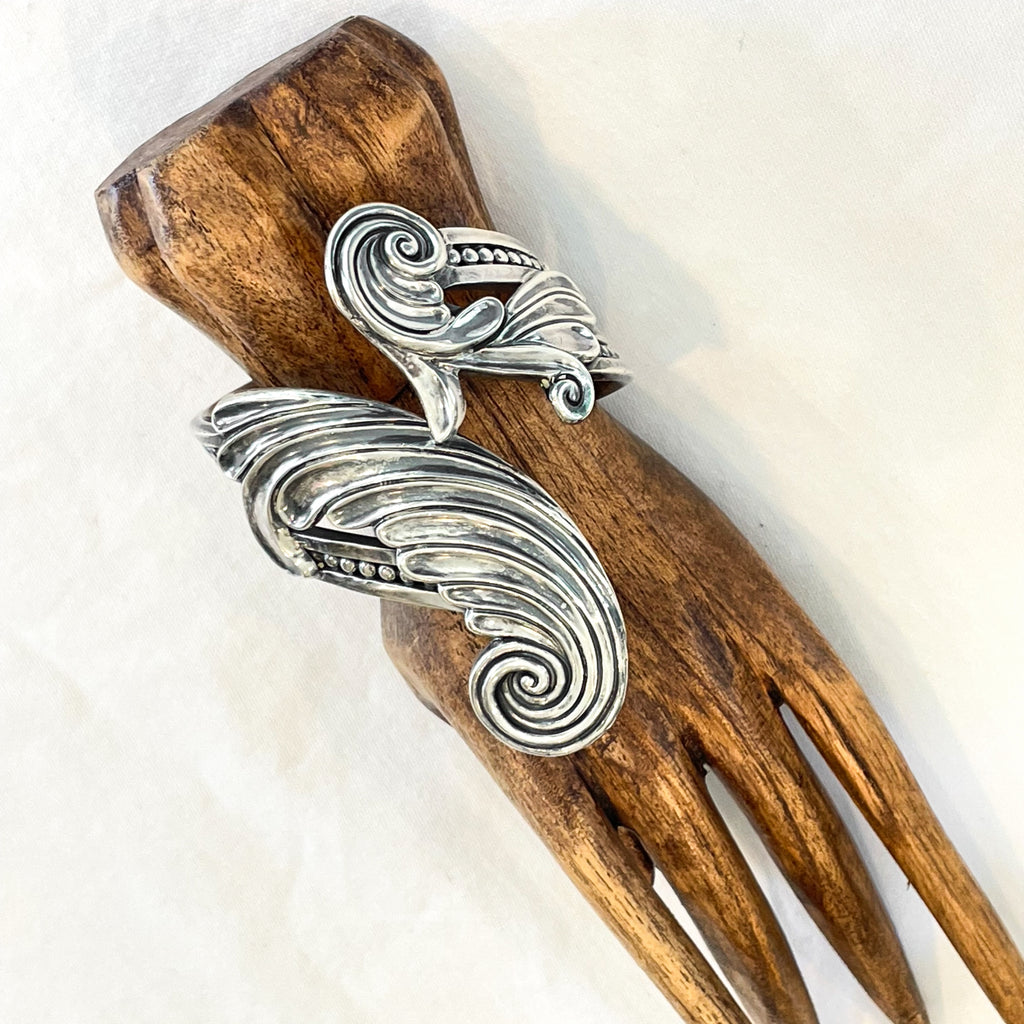 Beautiful, elegant heavily detailed piece with lovely swirly design on each side. One side is longer than the other.