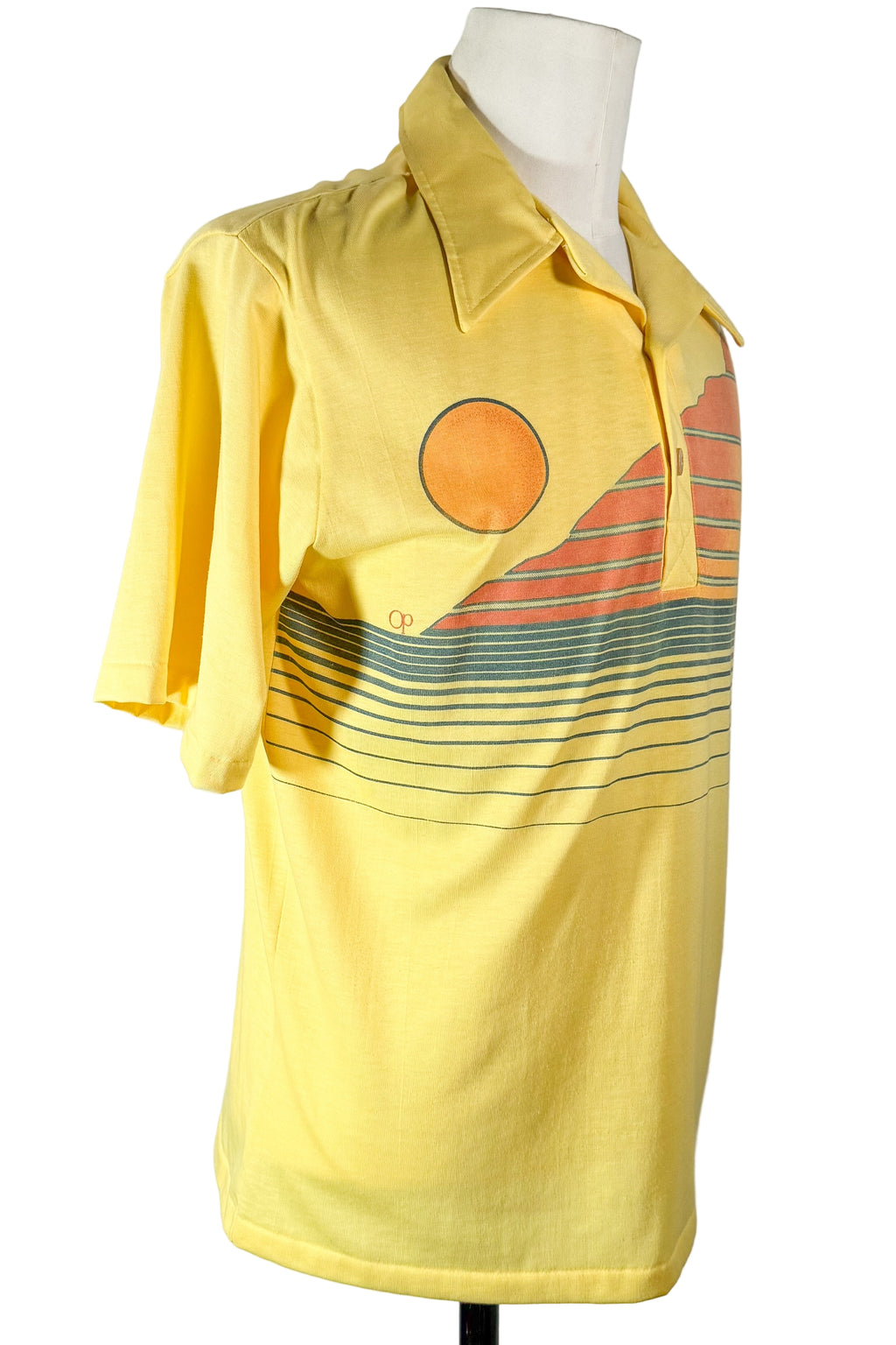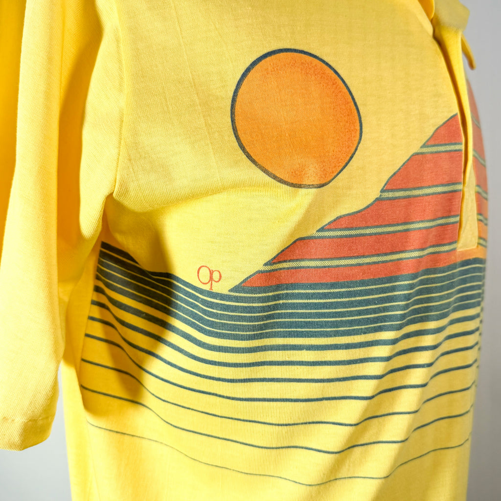 Vintage OP pullover shirt with great graphics and wood buttons.