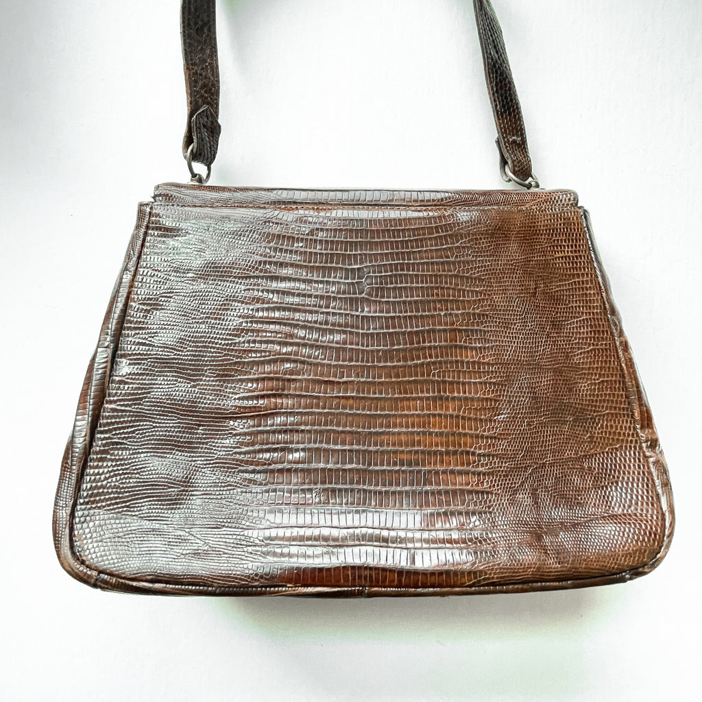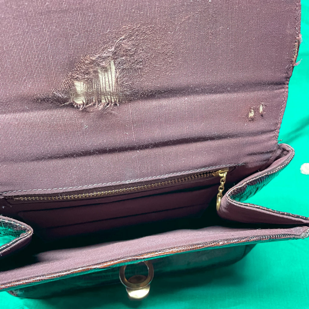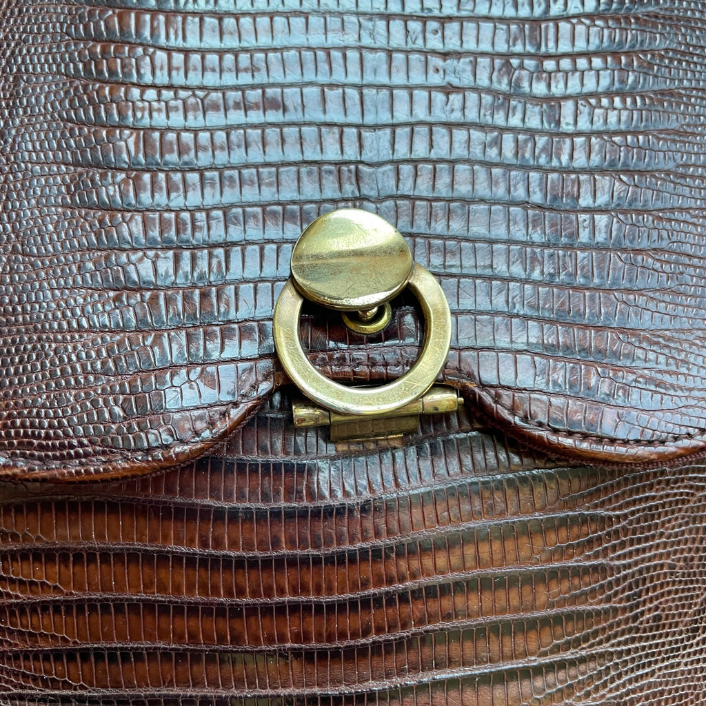 CONDITION: Very good with some light wear. The interior fabric is torn and damaged (see photo). The lizard bag has been conditioned.