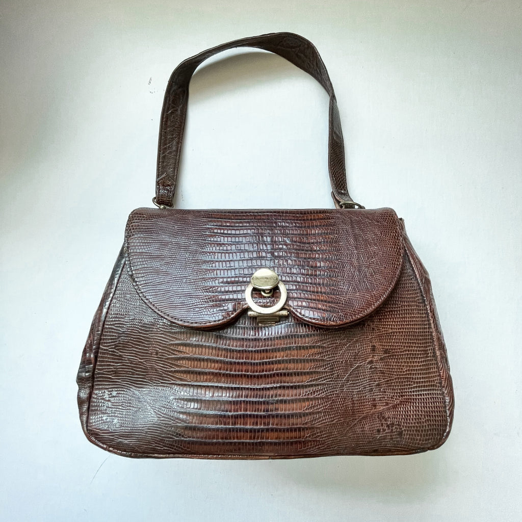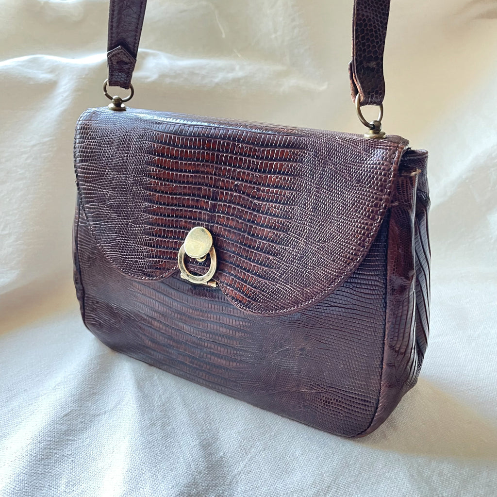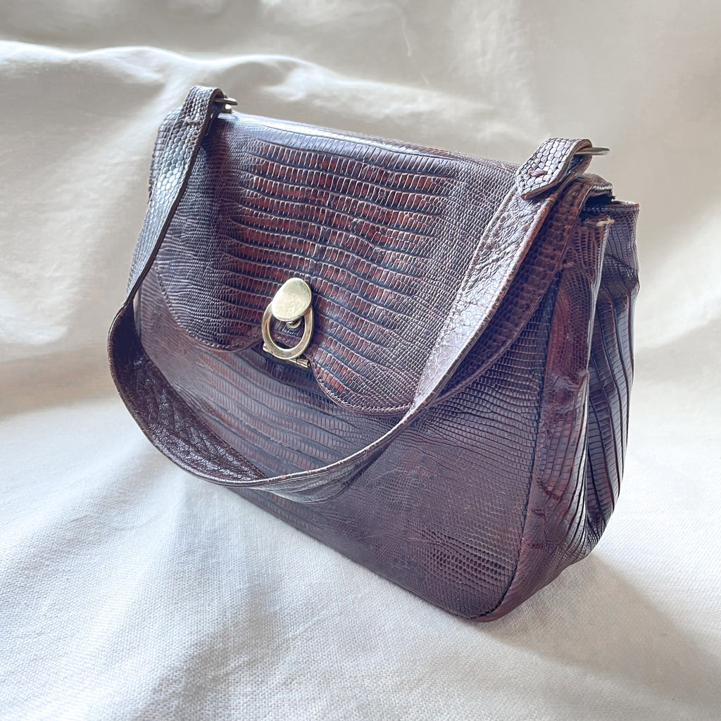 CONDITION: Very good with some light wear. The interior fabric is torn and damaged (see photo). The lizard bag has been conditioned.