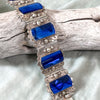 Vintage 40s Gustavo Martinez Silver Cobalt Blue Glass Bracelet, Pre Eagle 7"