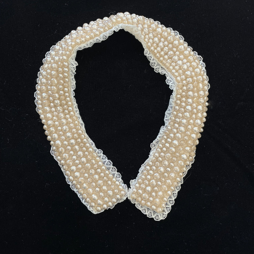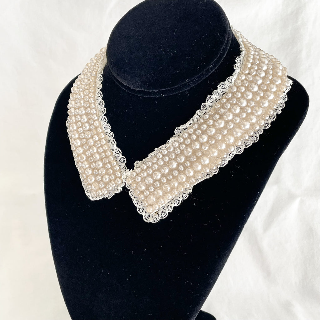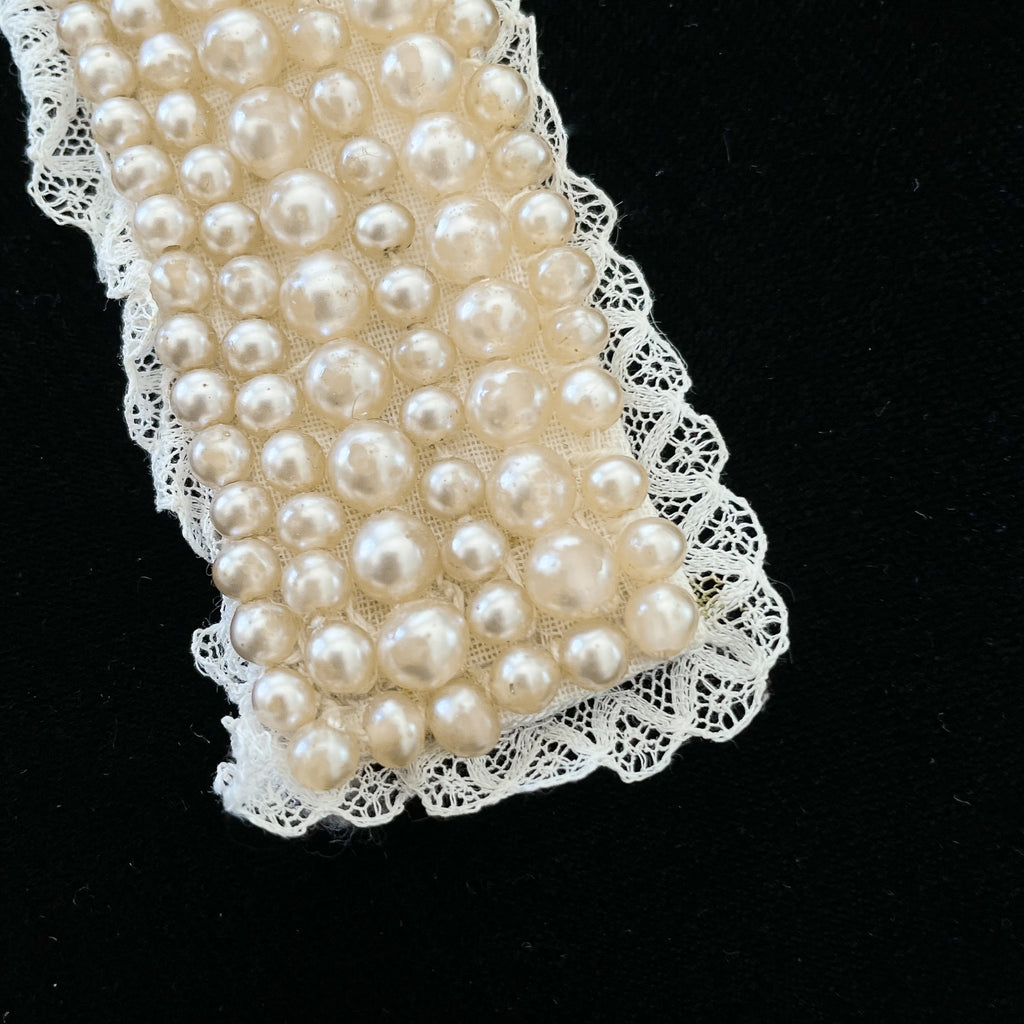 Vintage faux pearl collar necklace choker with tiny lace accents.