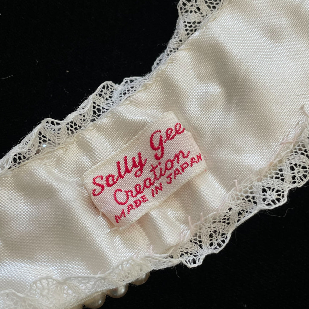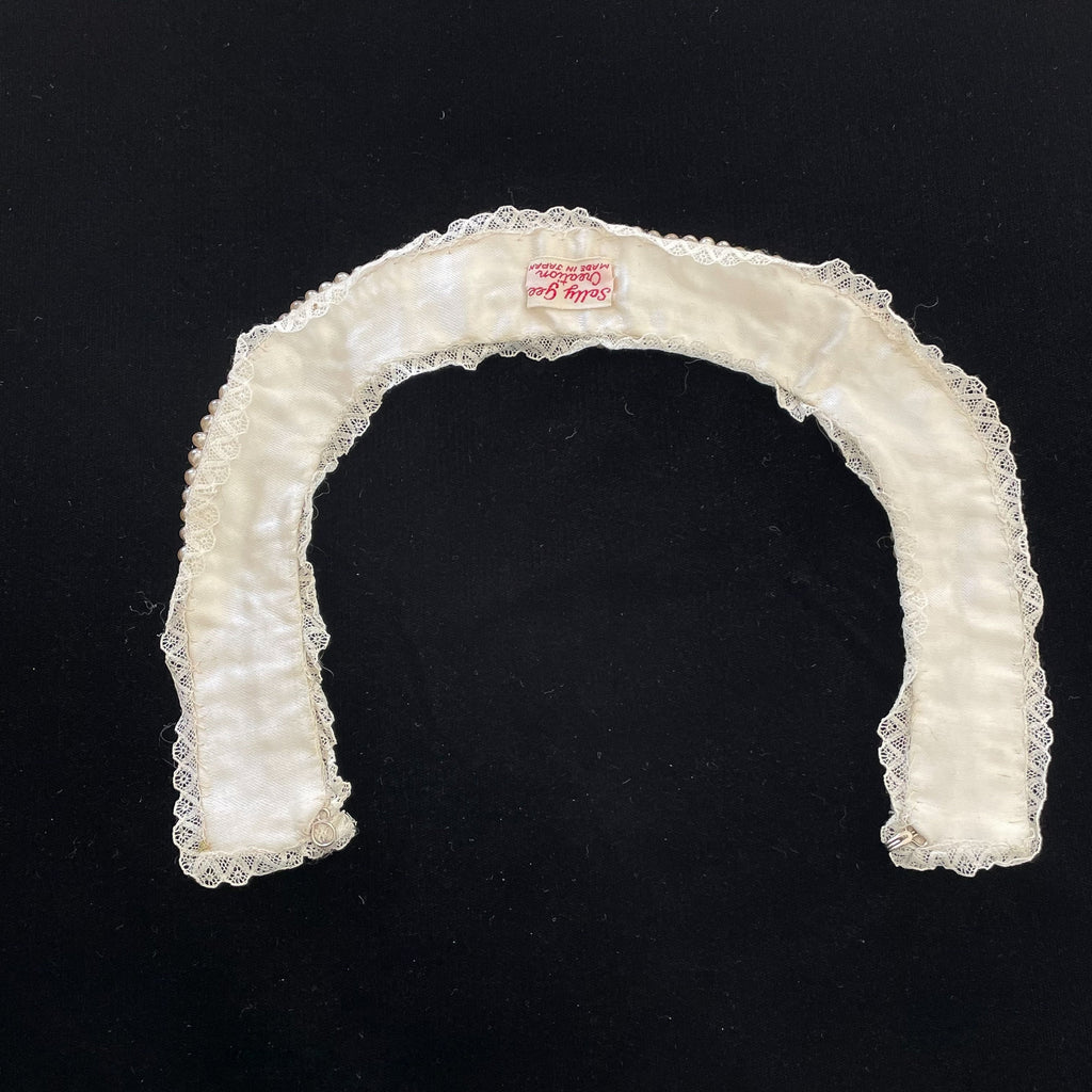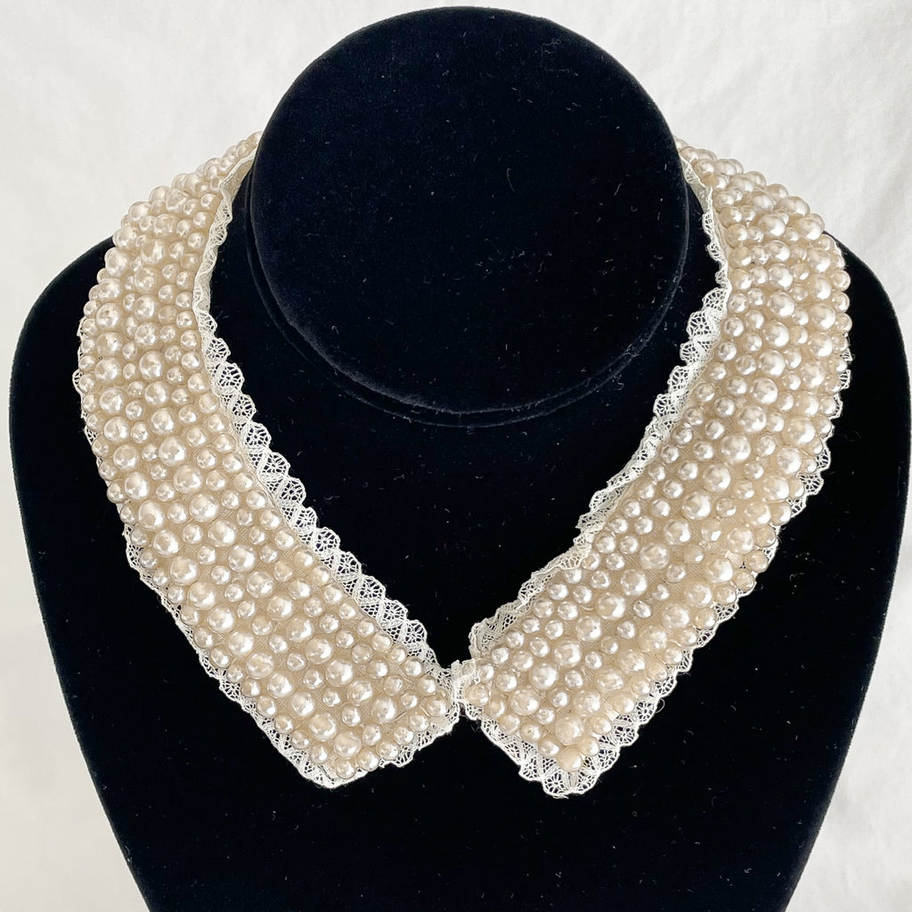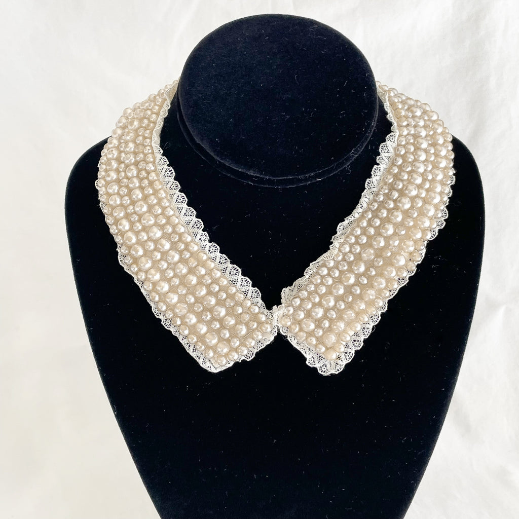 Vintage faux pearl collar necklace choker with tiny lace accents.