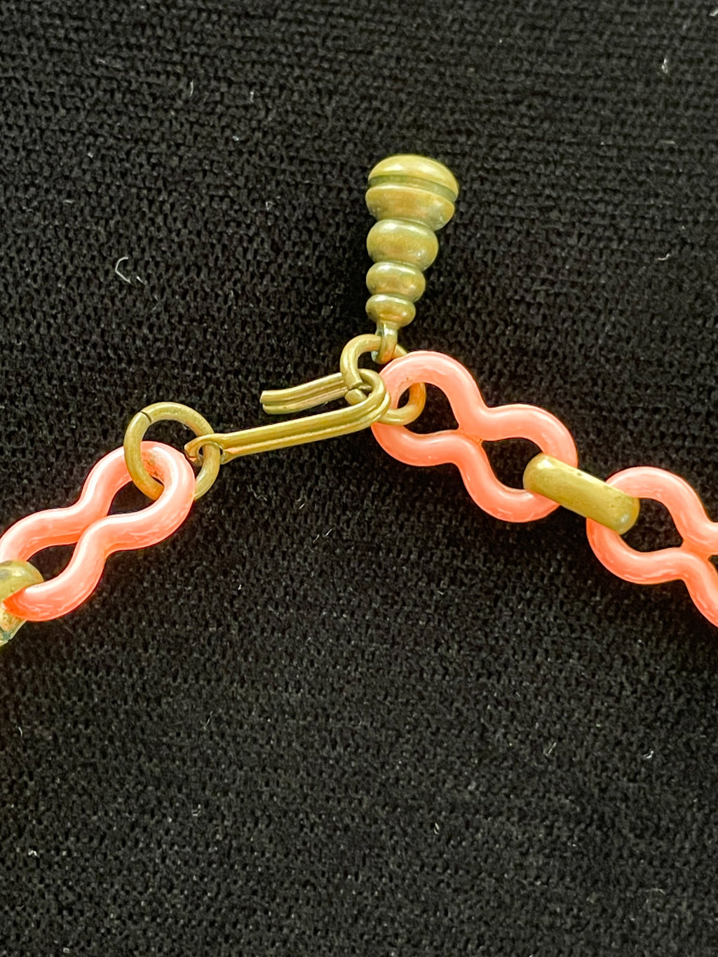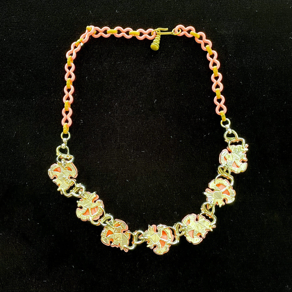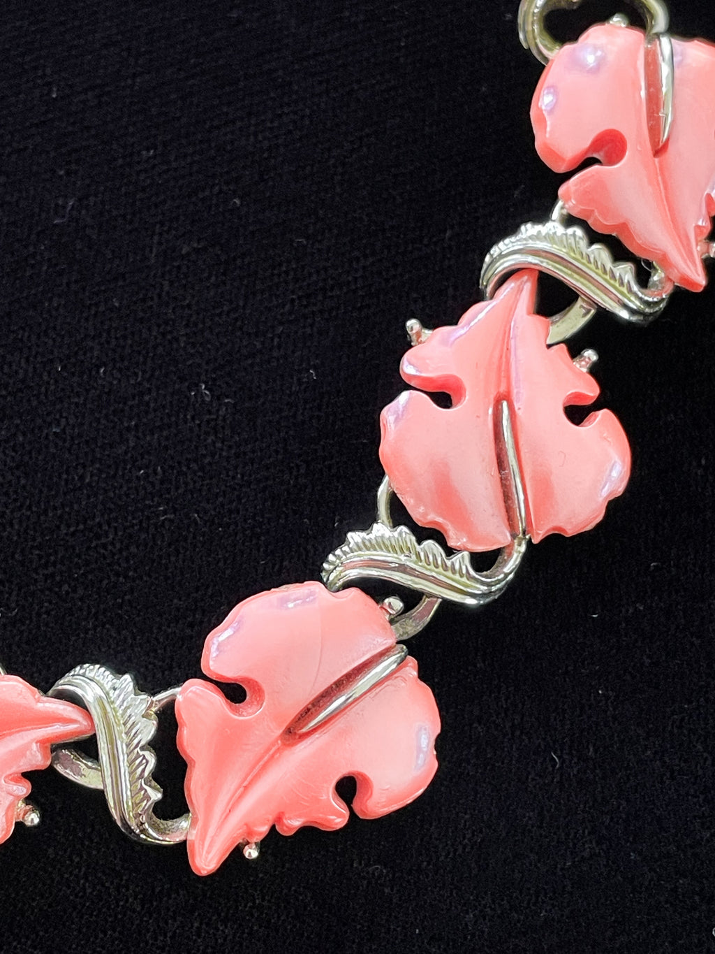 Vintage 50s Thermoset Lucite necklace in a leaf pattern.