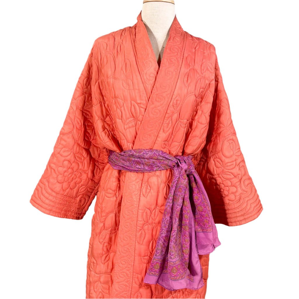 SOLD Vintage 50s Silk/Rayon Quilted Robe, Lingerie Loungewear, British Hong Kong L