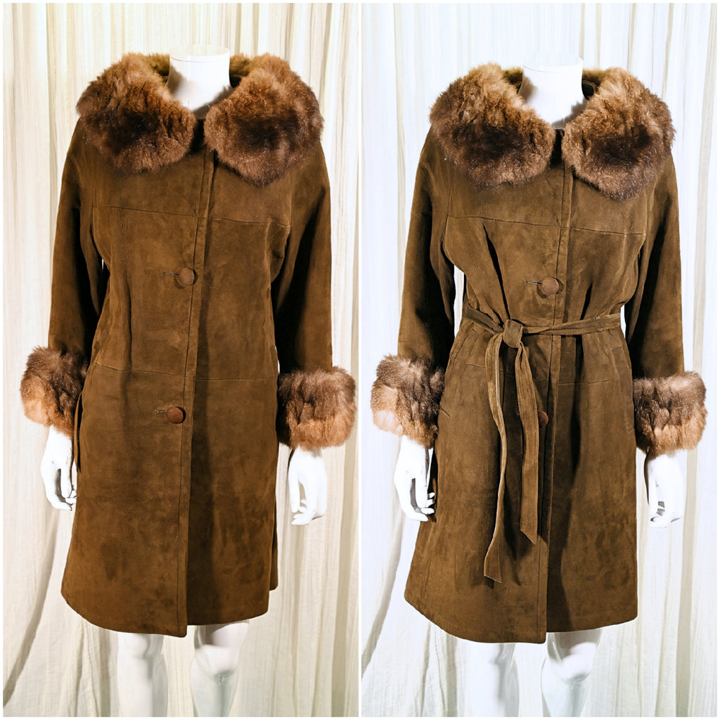 Vintage 60s soft suede coat with fur collar and cuffs.