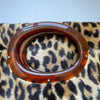 Fold over clutch bag. Plastic or Lucite handles in faux tortoise shell finish.