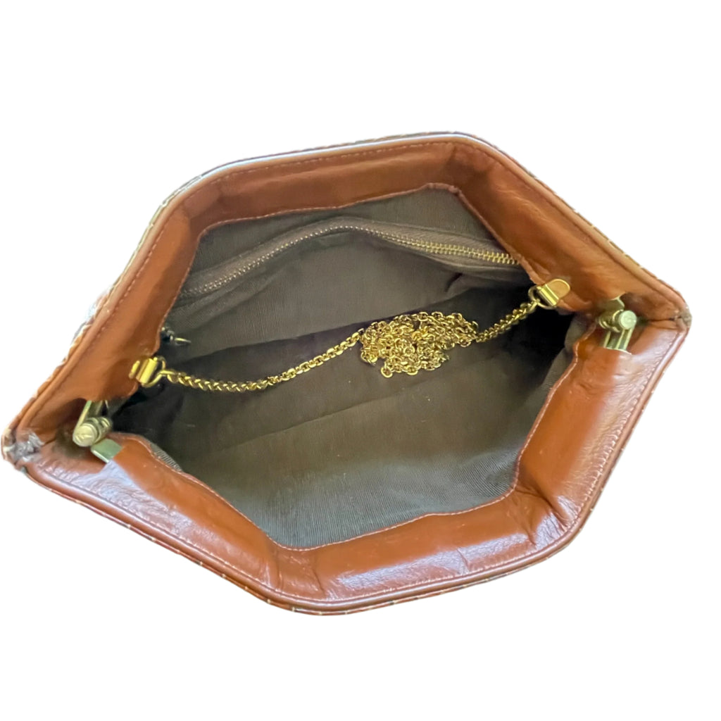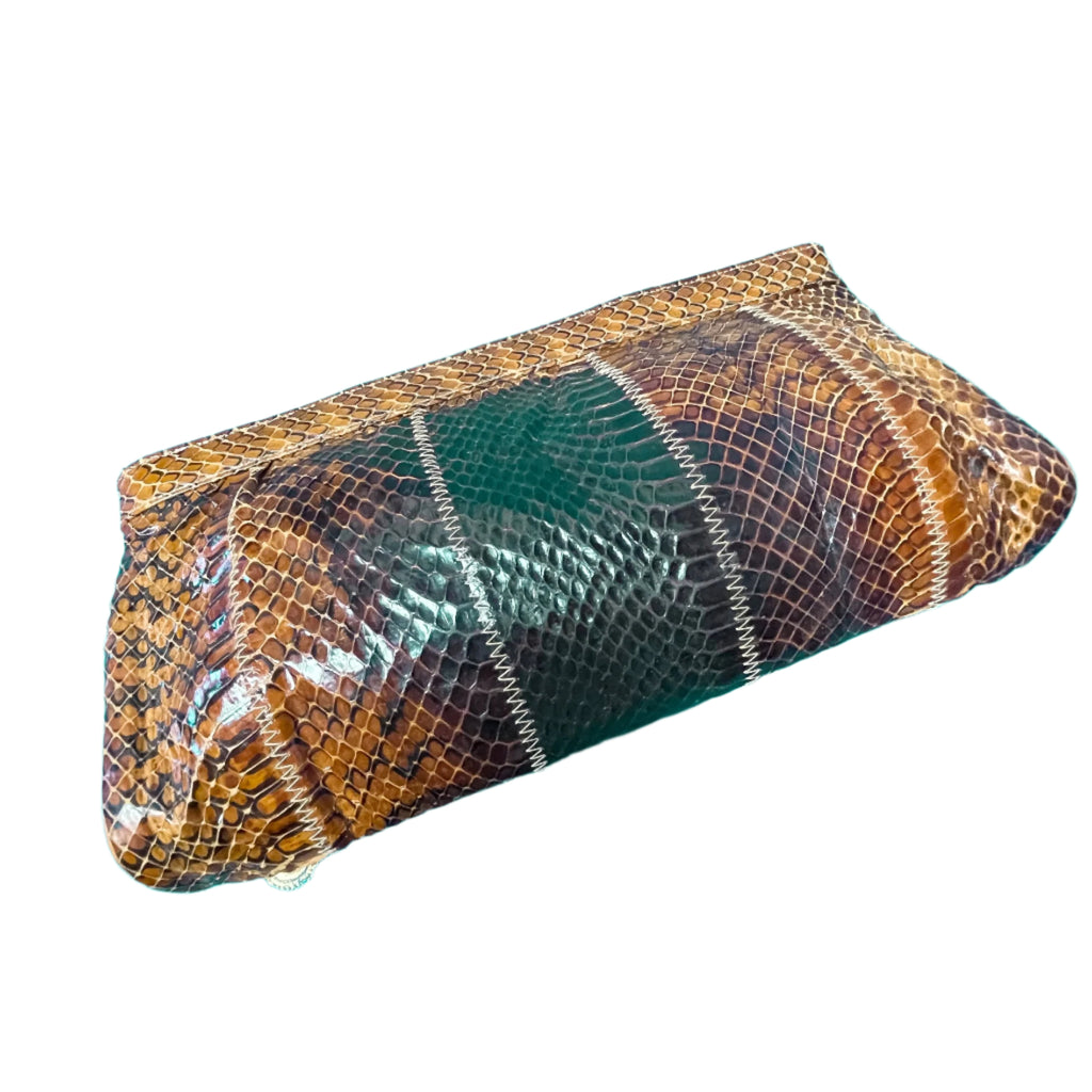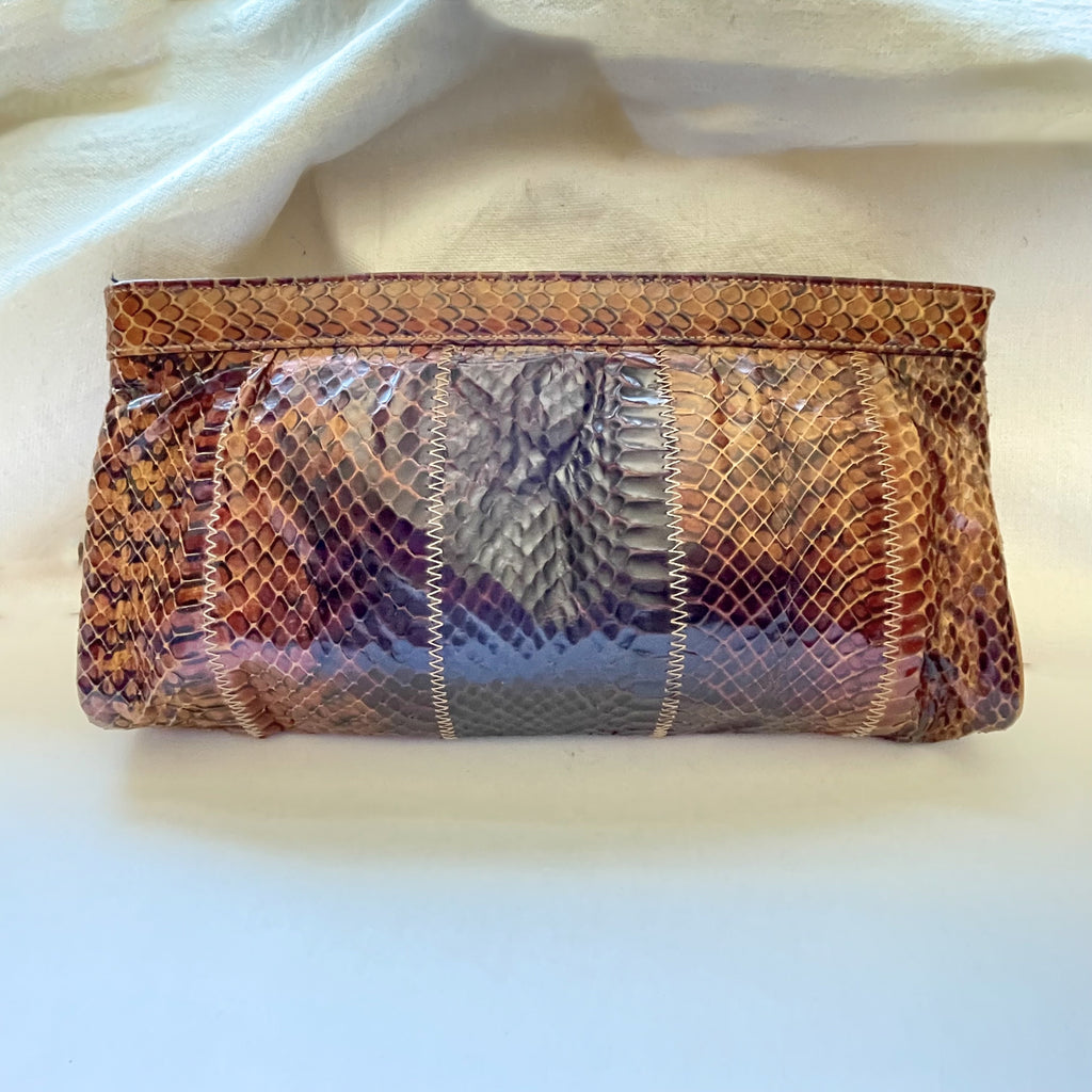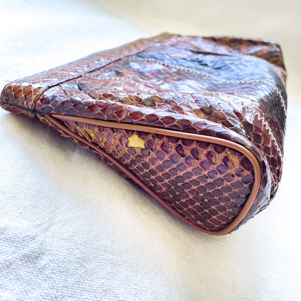 Vintage 70s Genuine Snakeskin Clutch Bag + Metal Strap