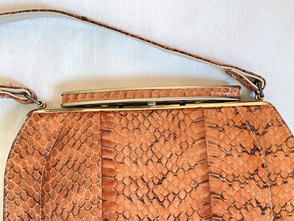 CONDITION: Excellent, 1 scale missing on the clasp on the top of the bag (see photo). The snakeskin has been conditioned.