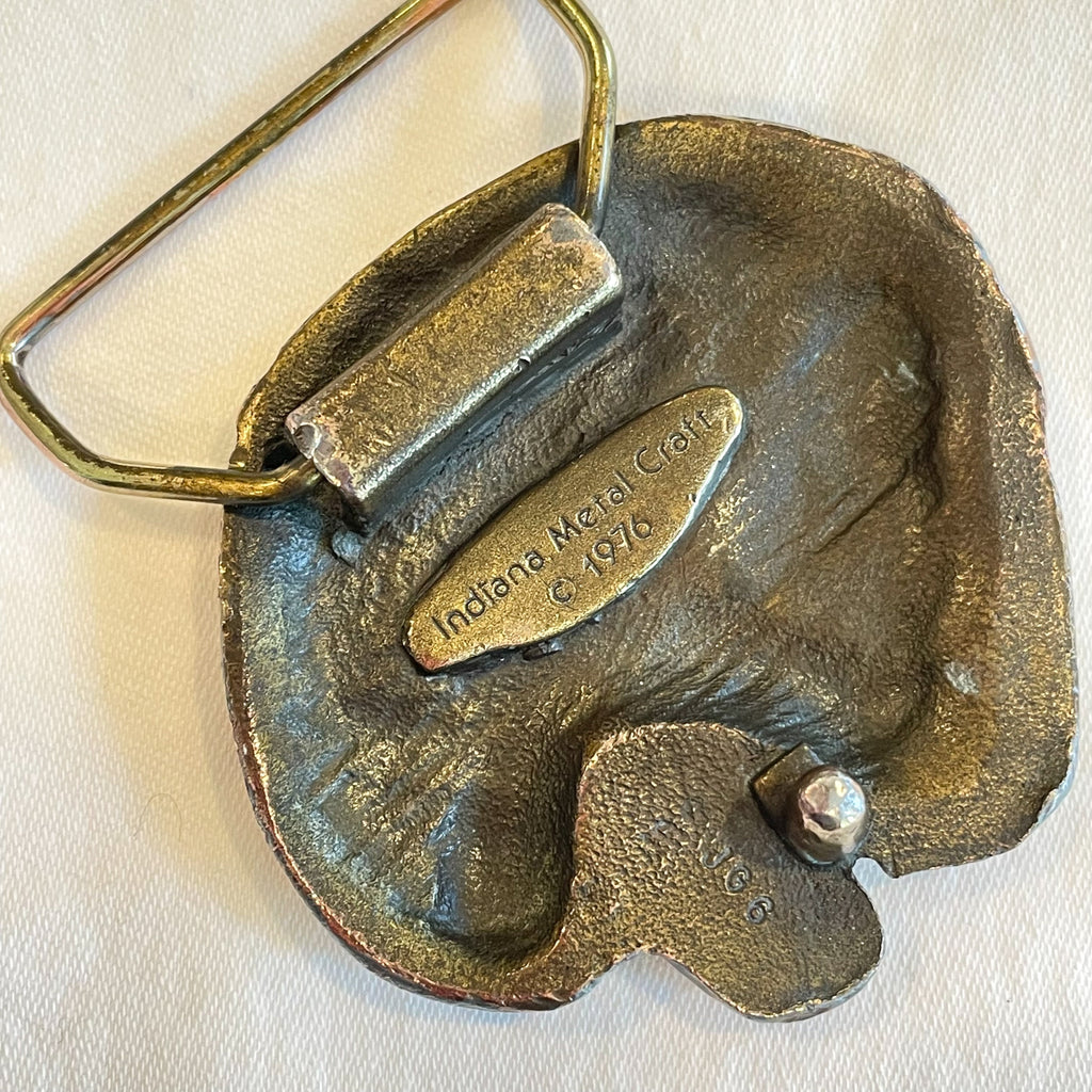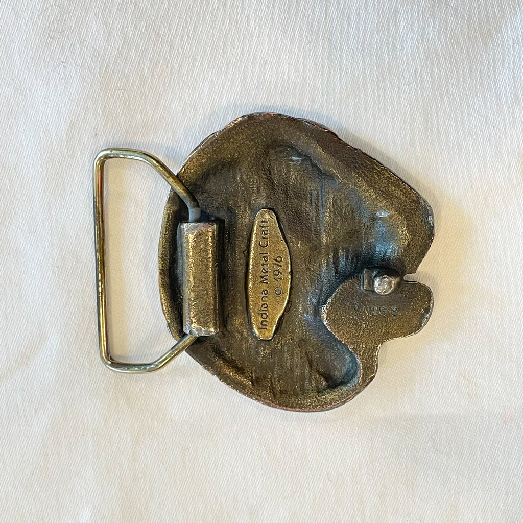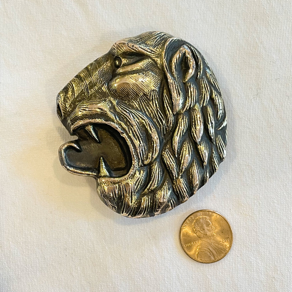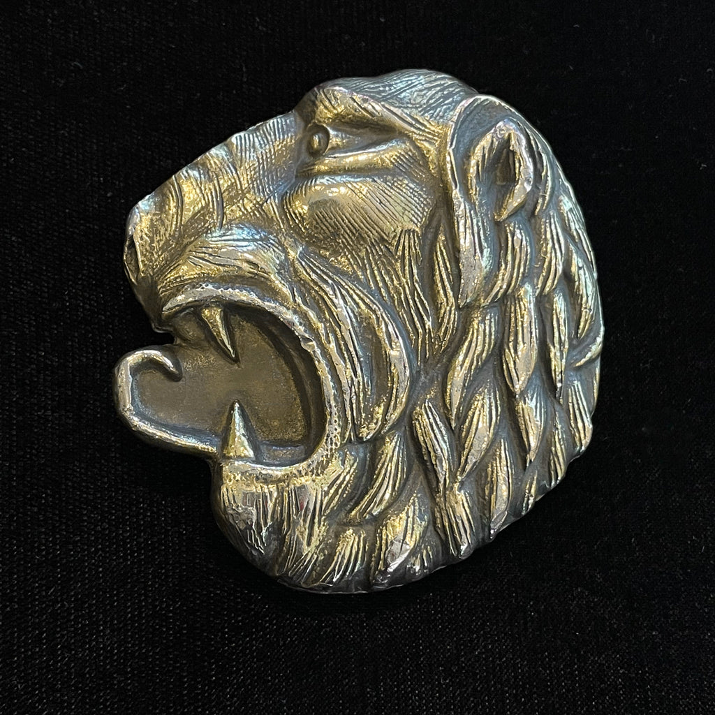 Vintage 70s brass lion belt buckle. Fierce roaring lion with mouth open.