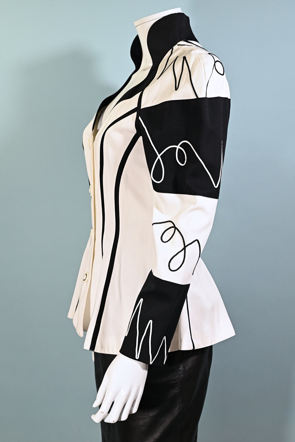 SOLD Vintage 80s Black/White Post Modern Blazer, New Wave Peplum Jacket S
