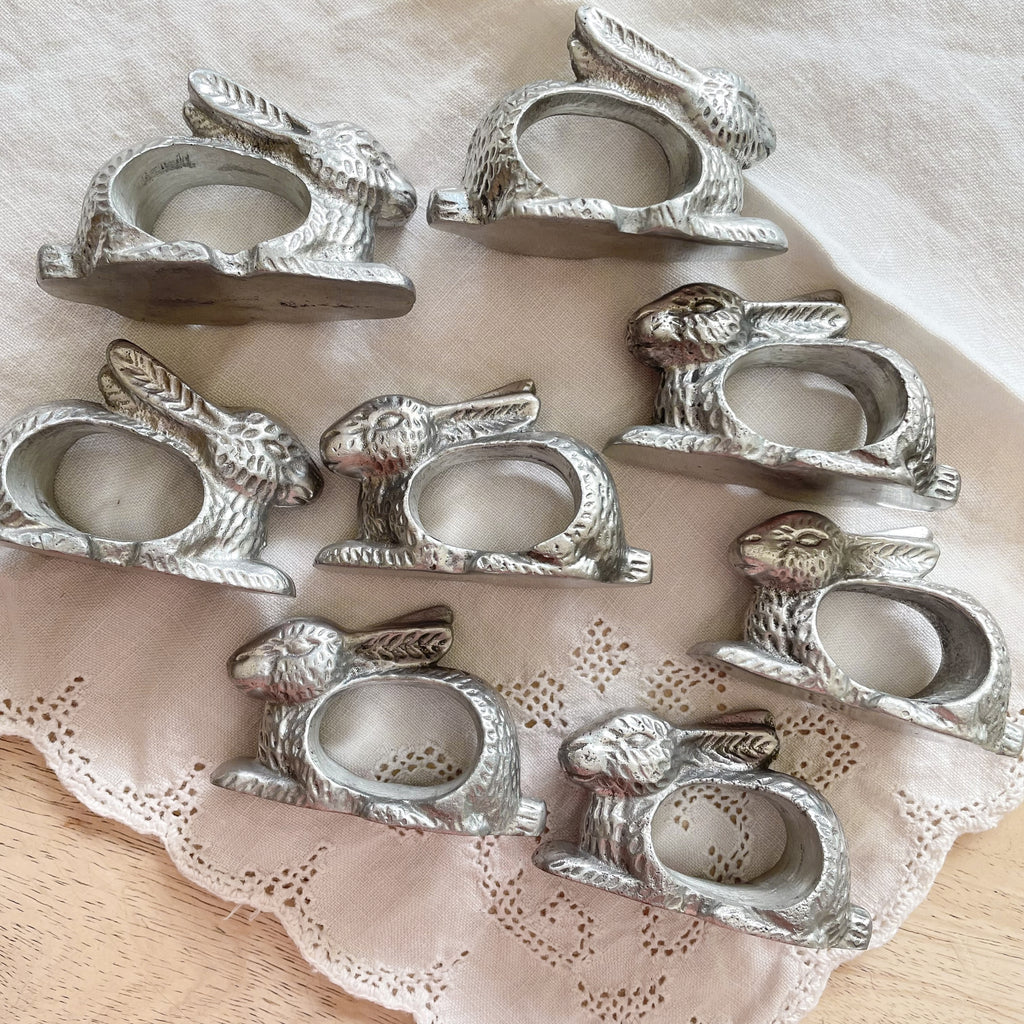 SOLD Vintage 90s Arthur Court Rabbit/Bunny Napkin Rings, Set of 8