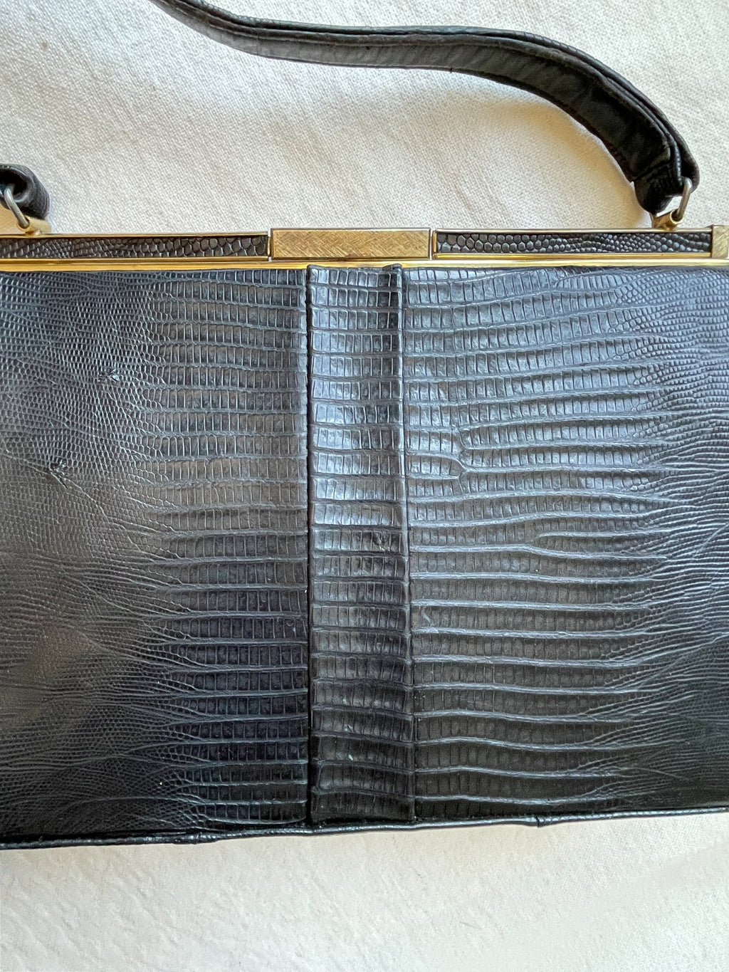 Vintage black Lizard top handle handbag.