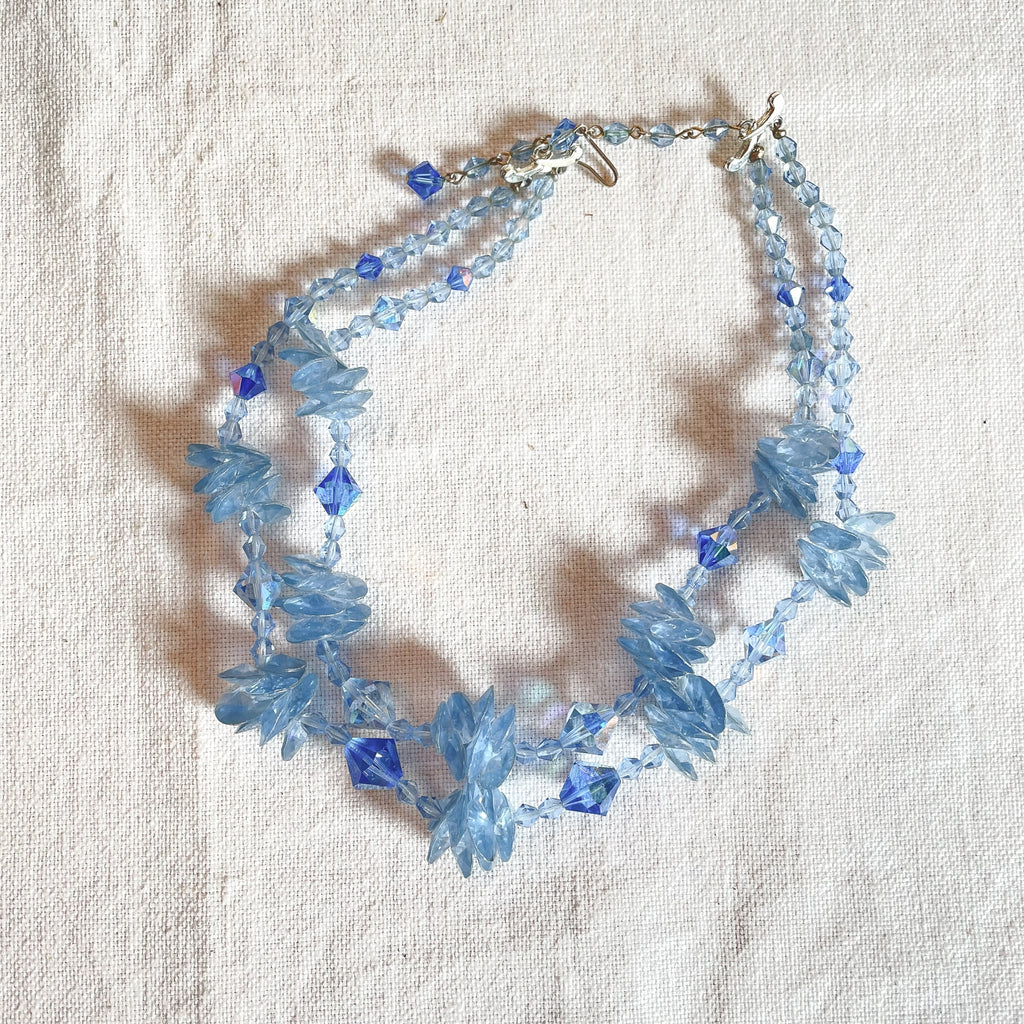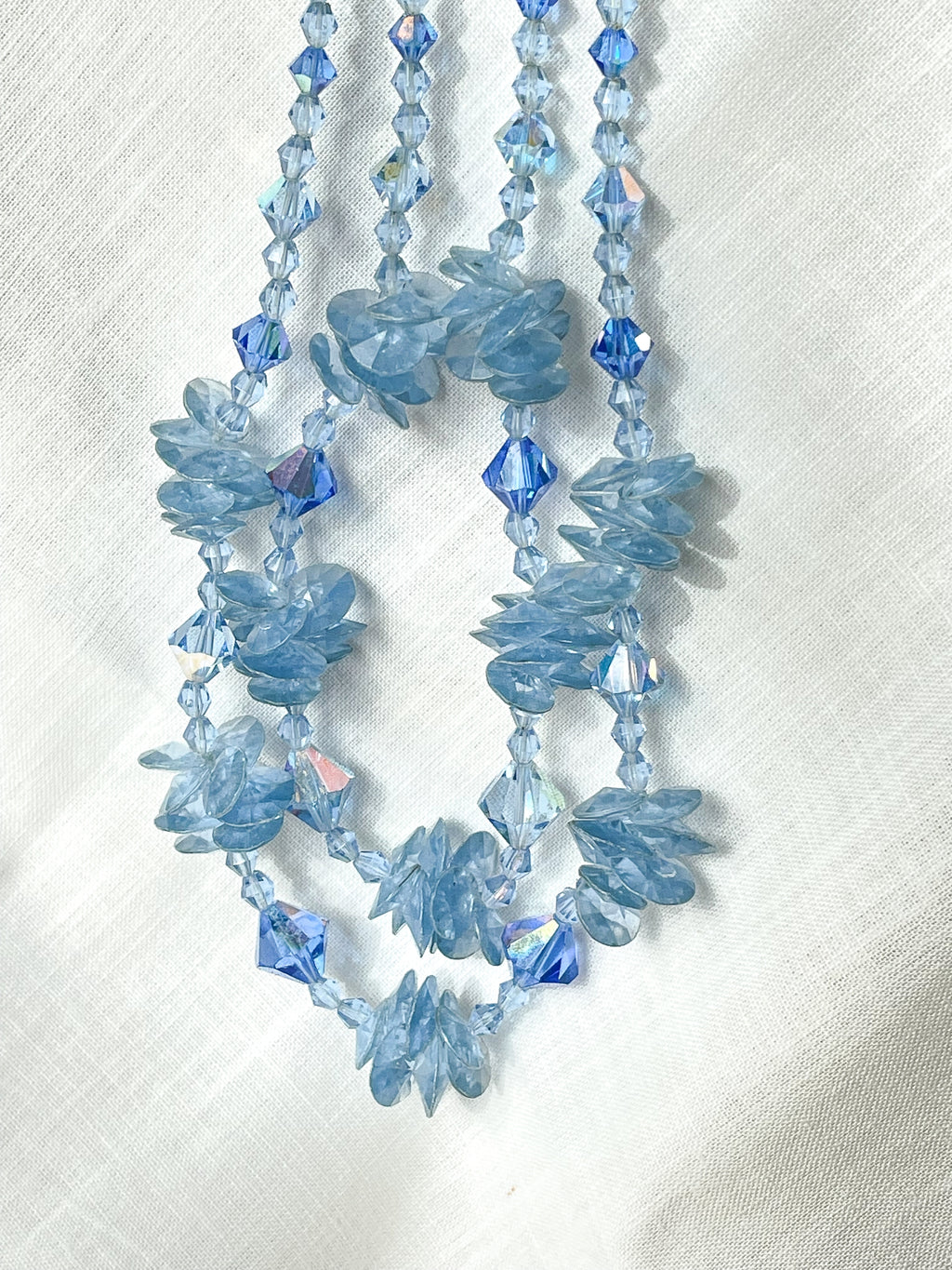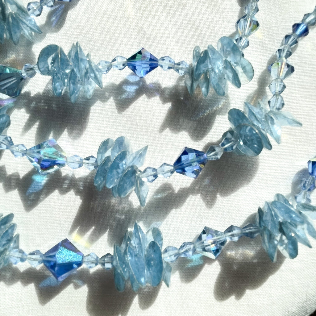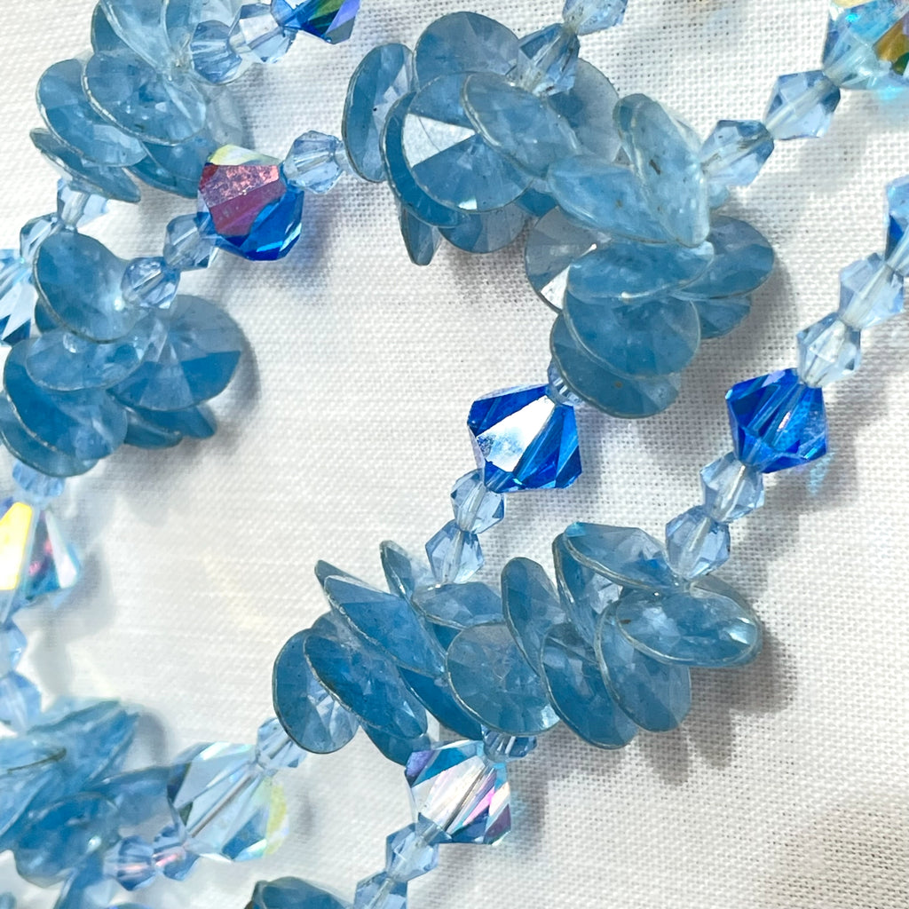 Vintage Art Deco blue graduated crystal and plastic beaded necklace.