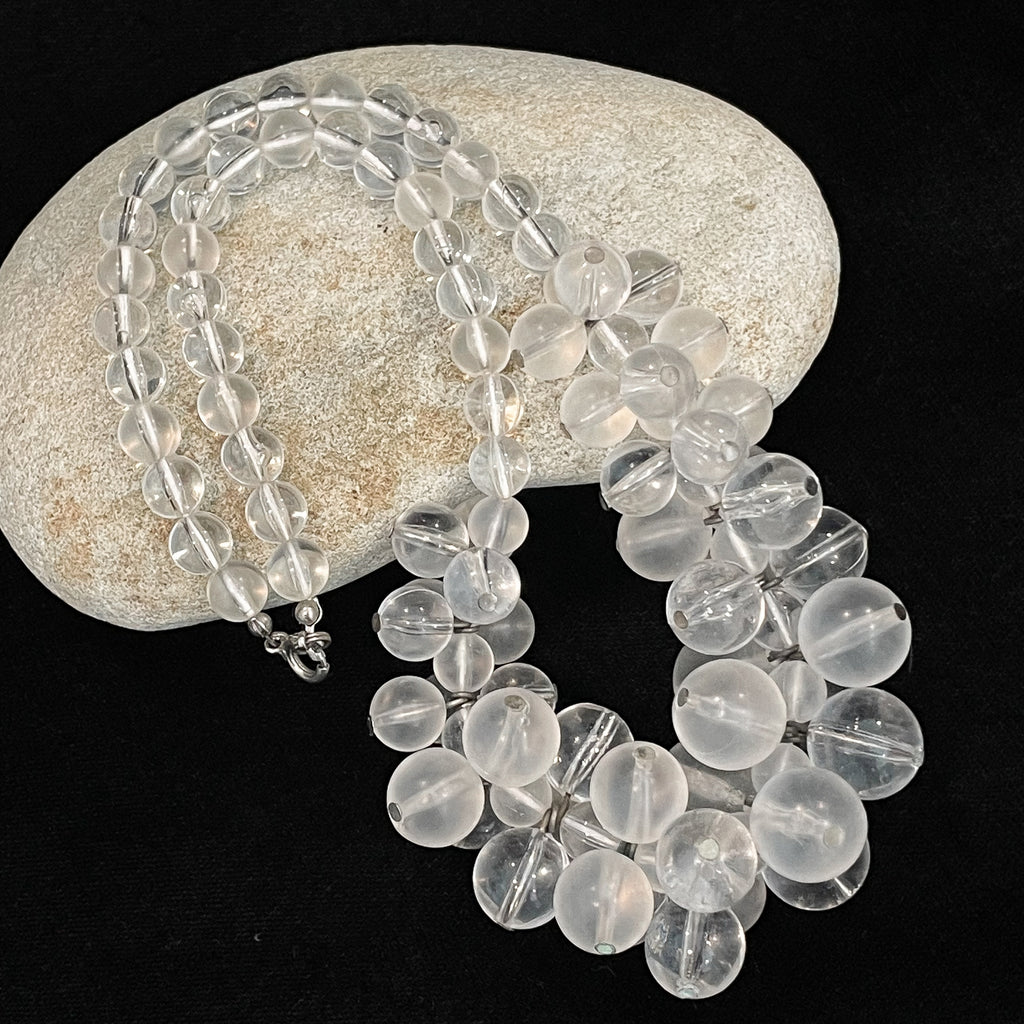 Vintage Clear & Frosted Lucite Bubble Bobble Beaded Necklace