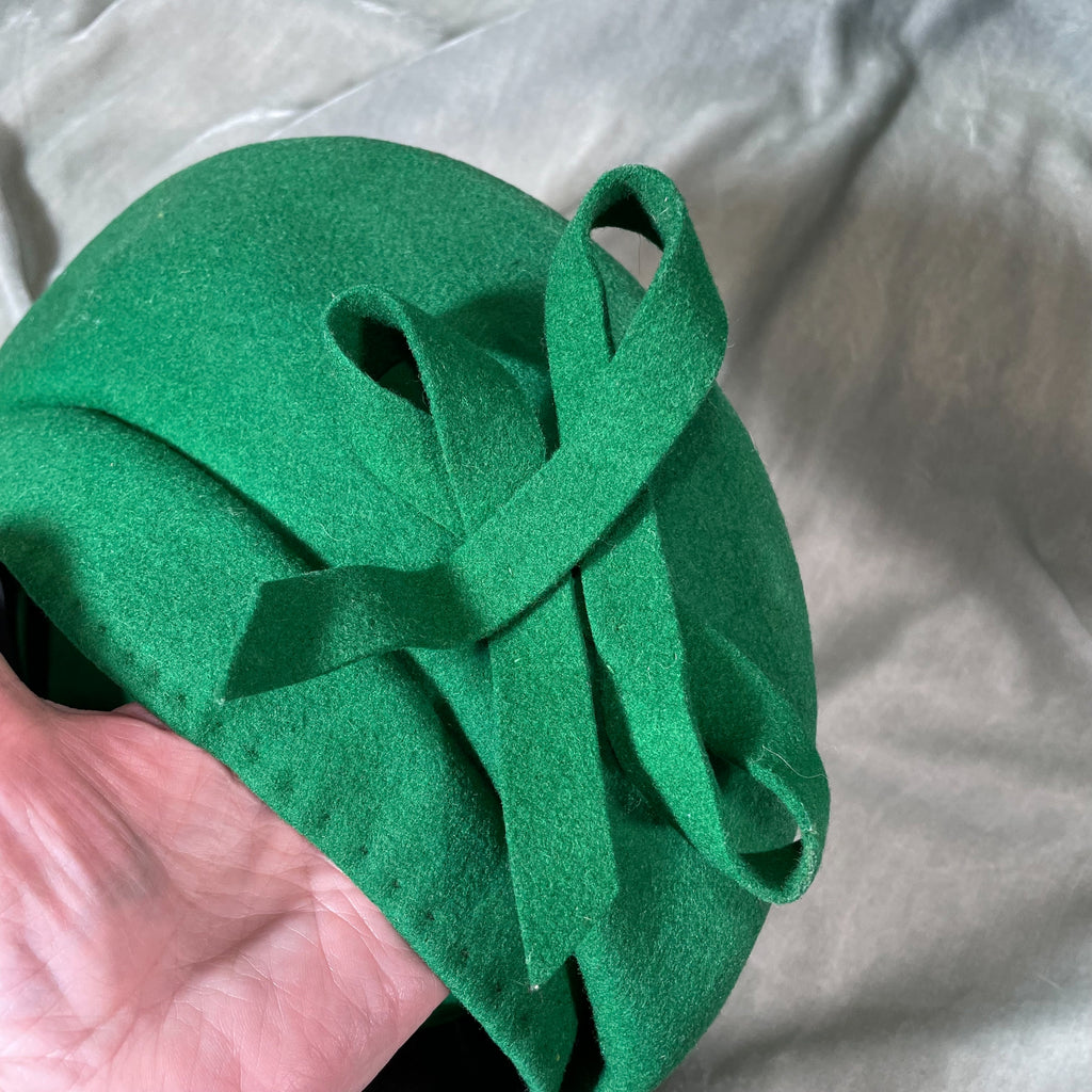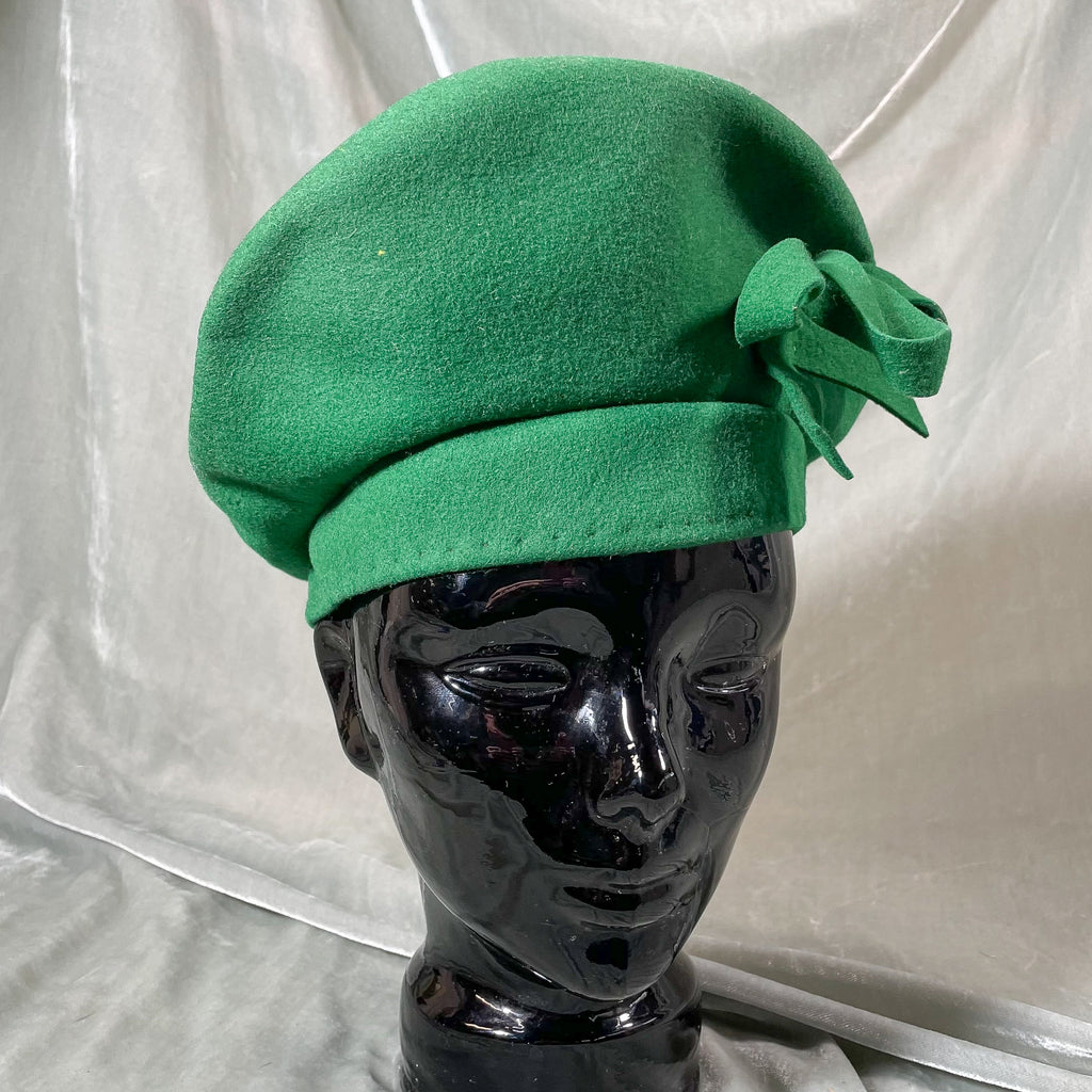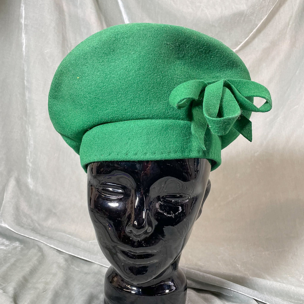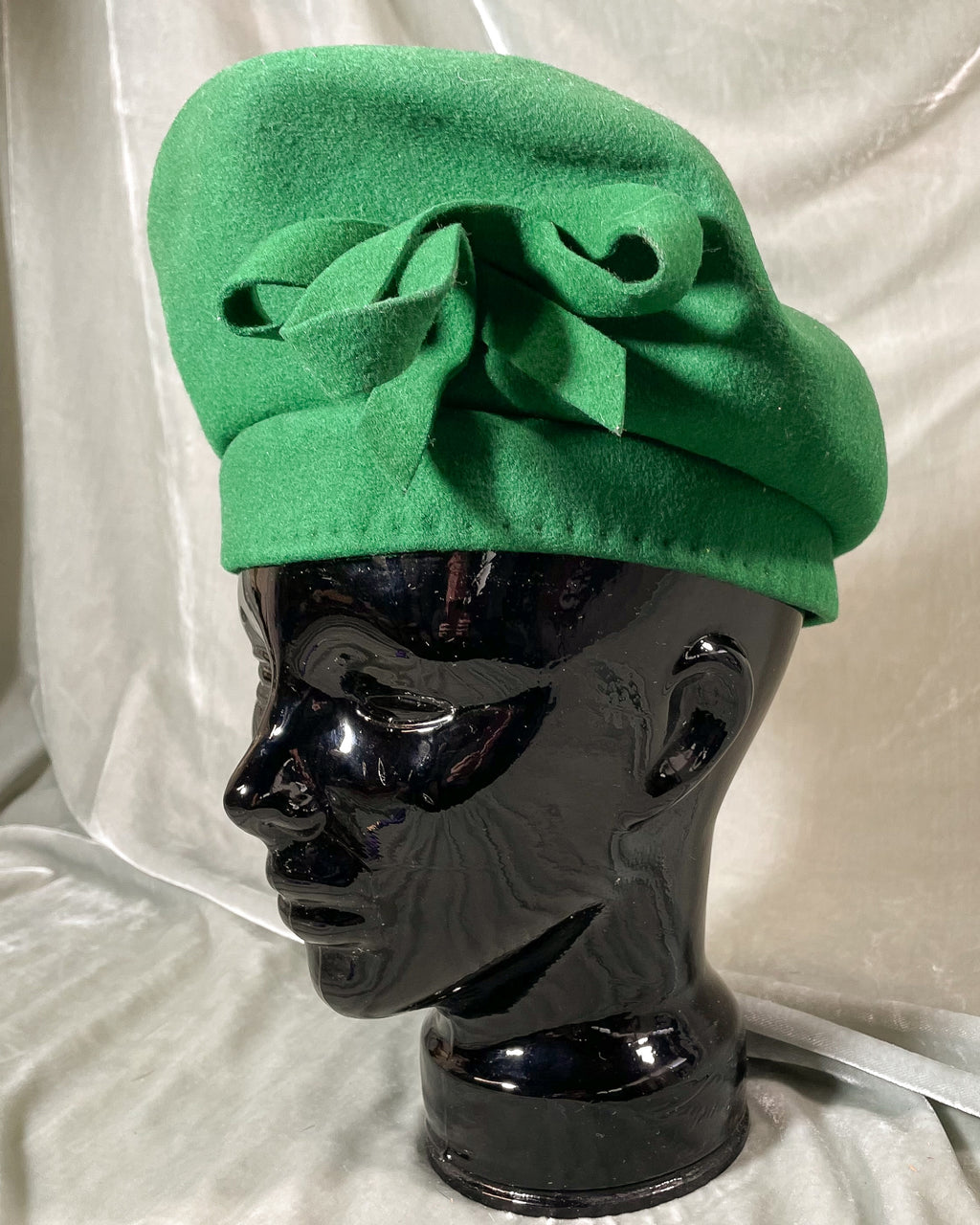 Vintage 40s Green Wool/Felt Hat w/Bow, Has Some Spots S