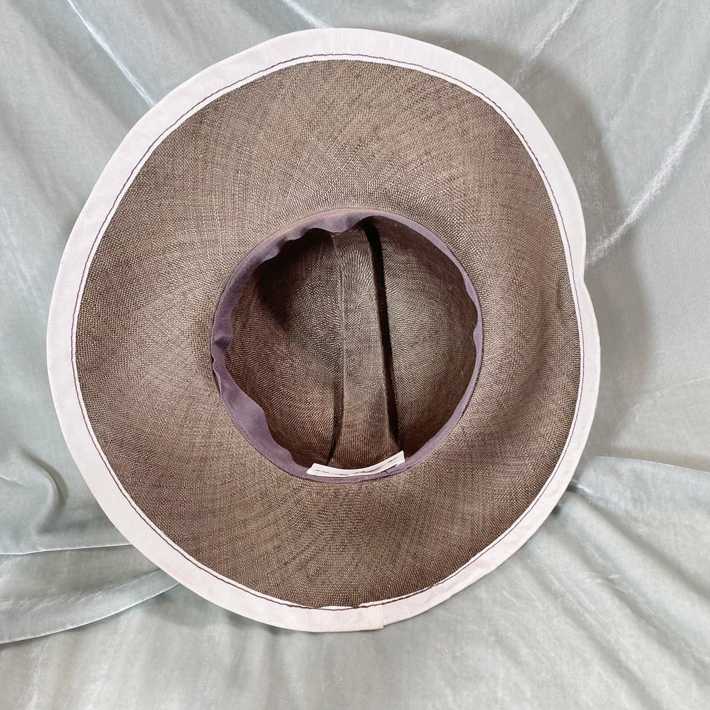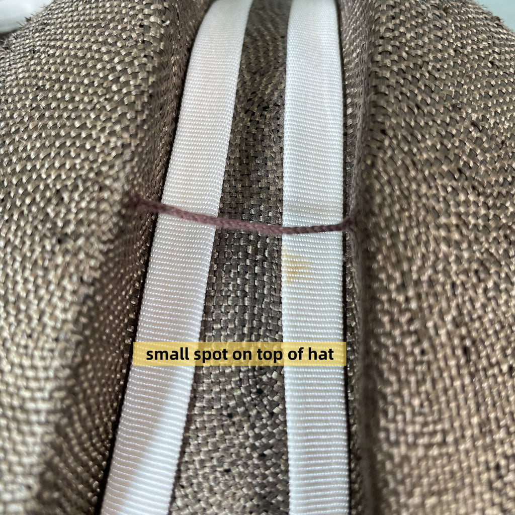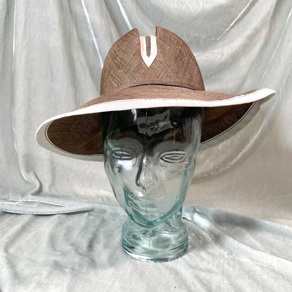 Vintage straw hat with ribbon banding on the brim and center.