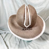 Taupe color with white ribbon banding.