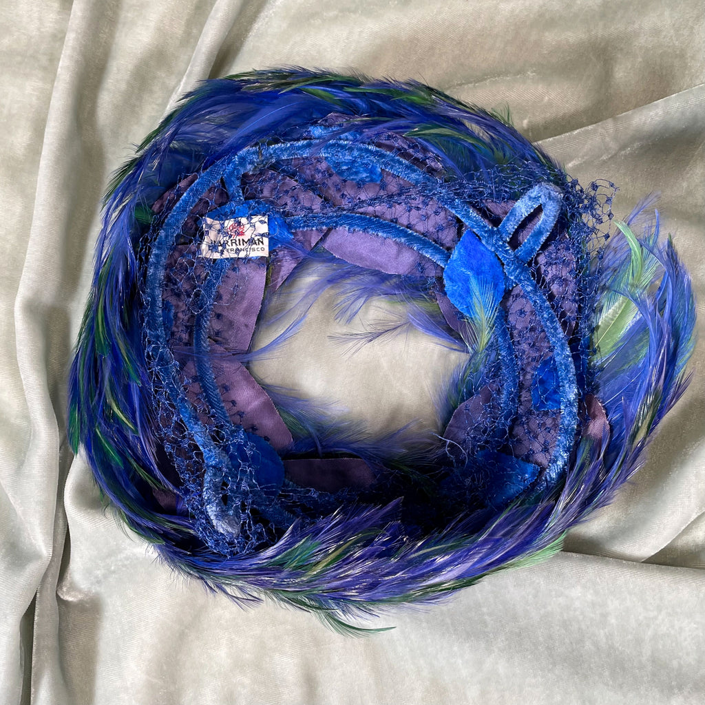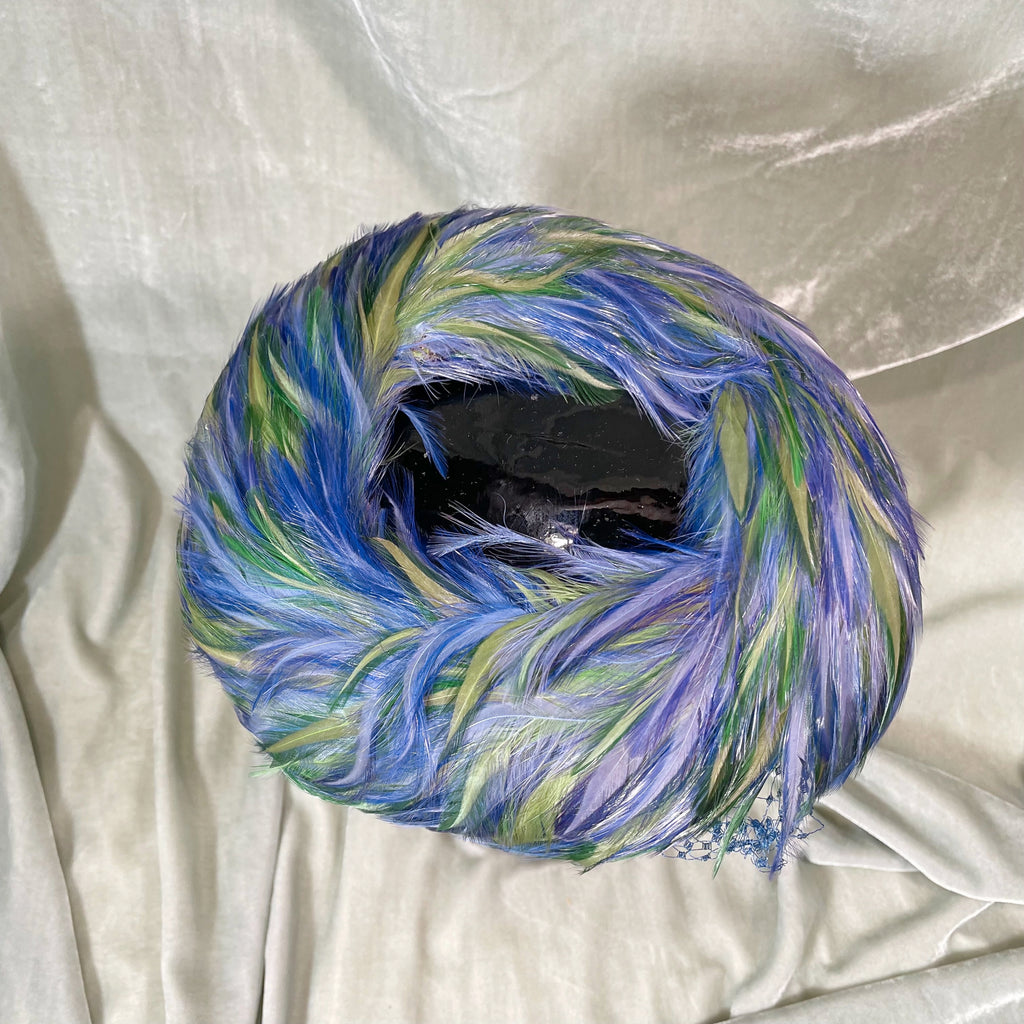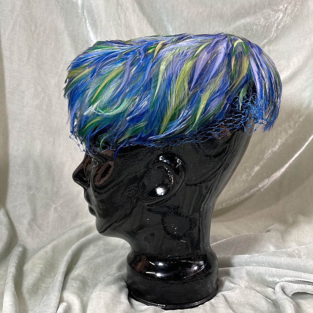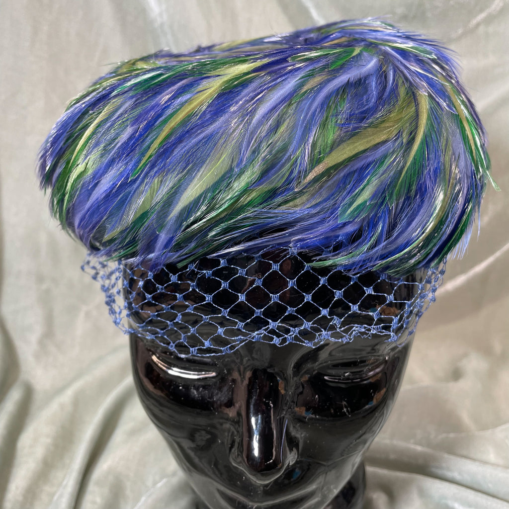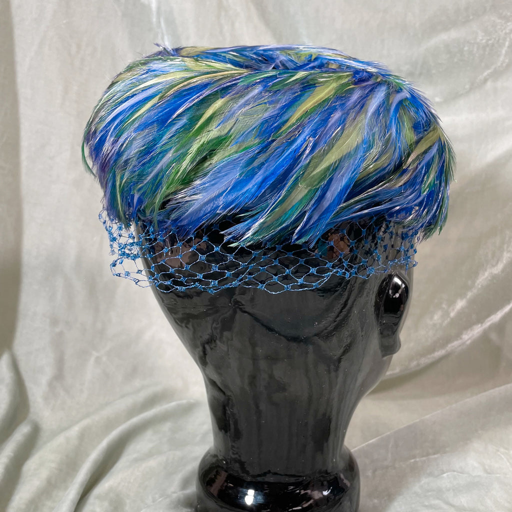 Harriman Vintage 50s Blue/Green Feather Fascinator Hat S