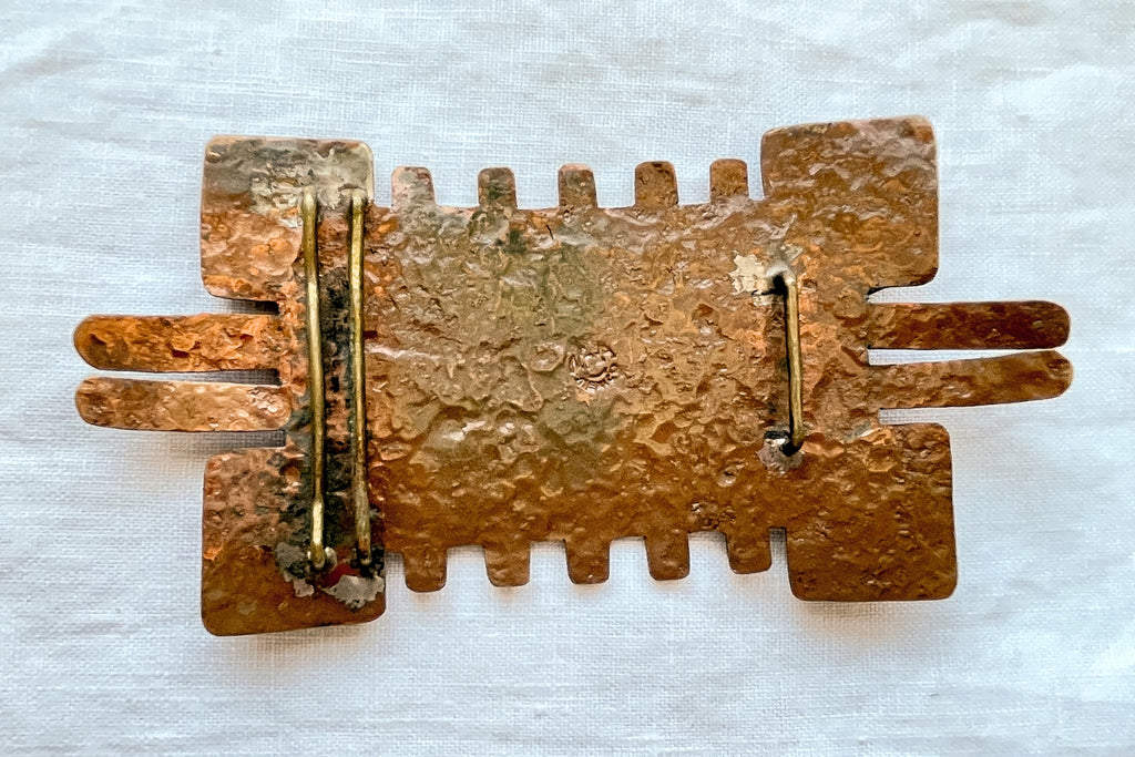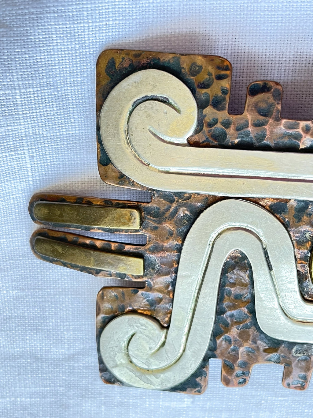 Vintage mixed metal belt buckle from Casa Maya Mexico.