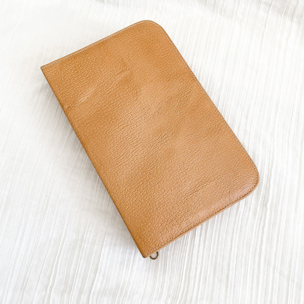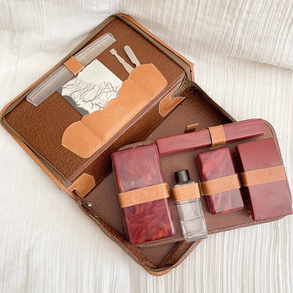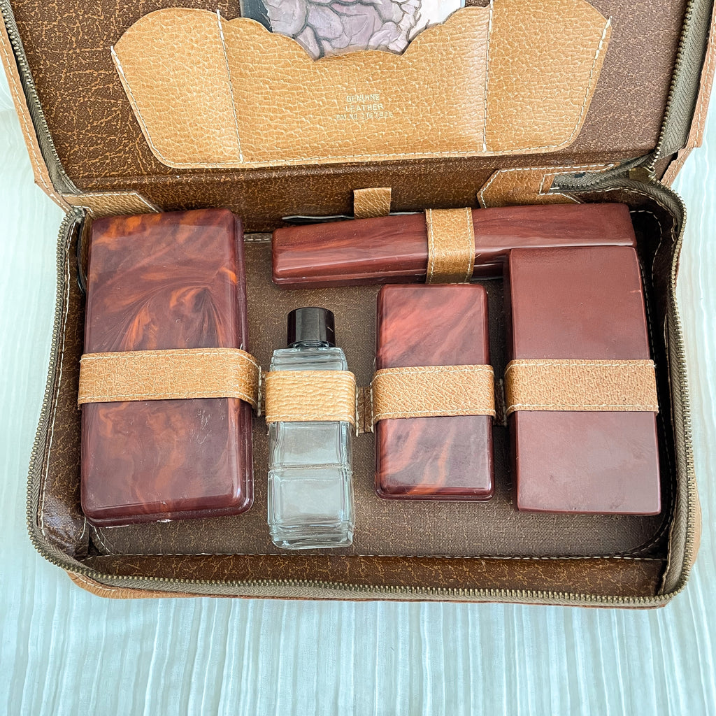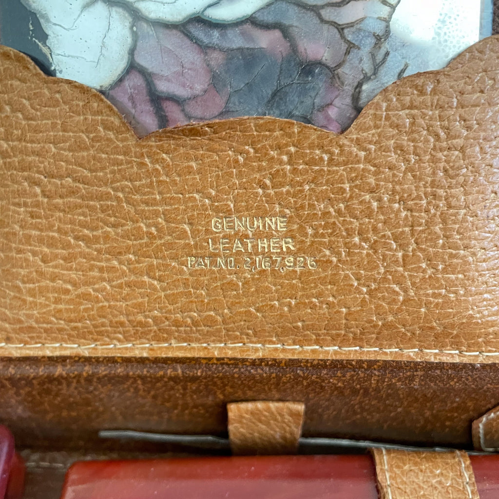 The interior lining is a darker color. Marbled plastic/Lucite brownish red.