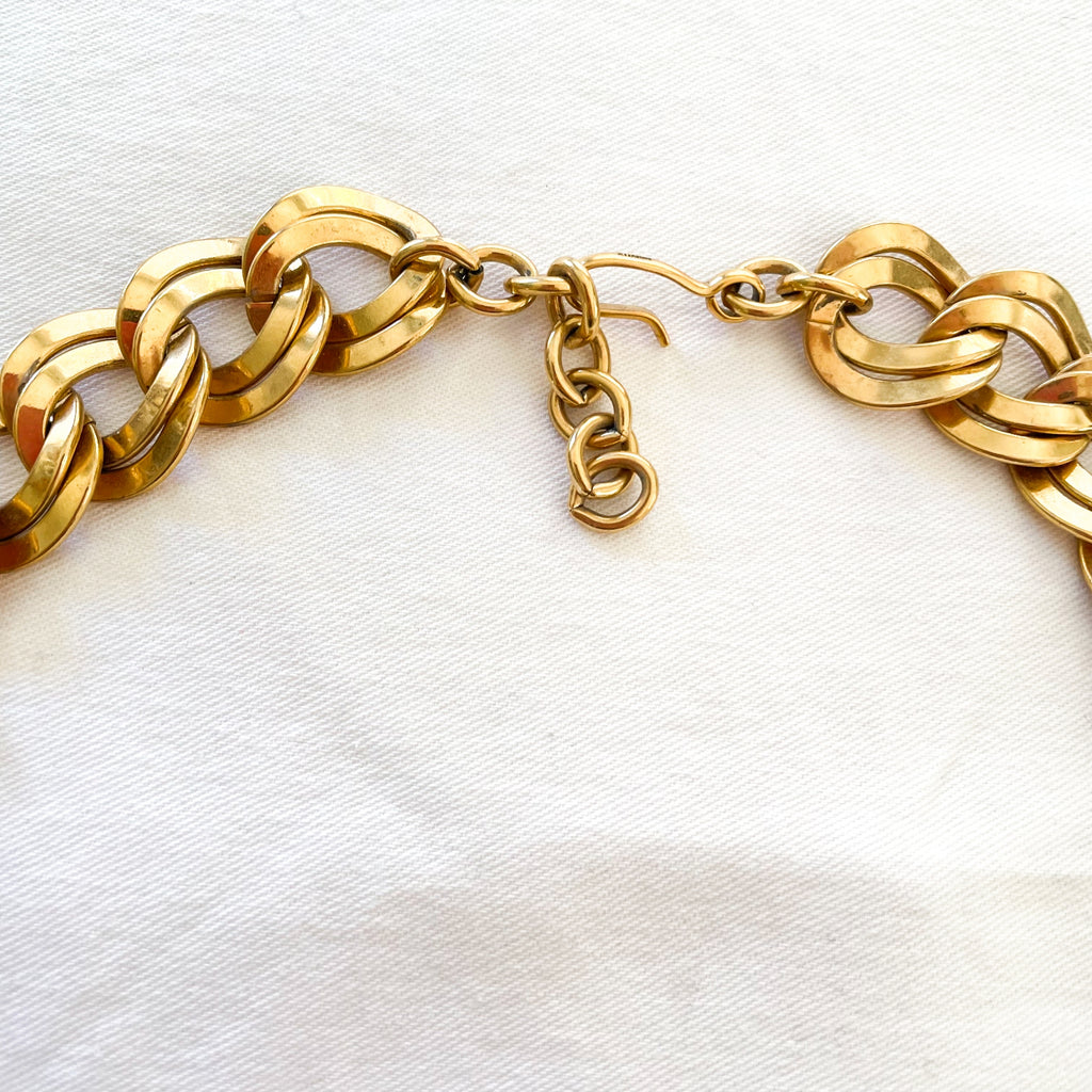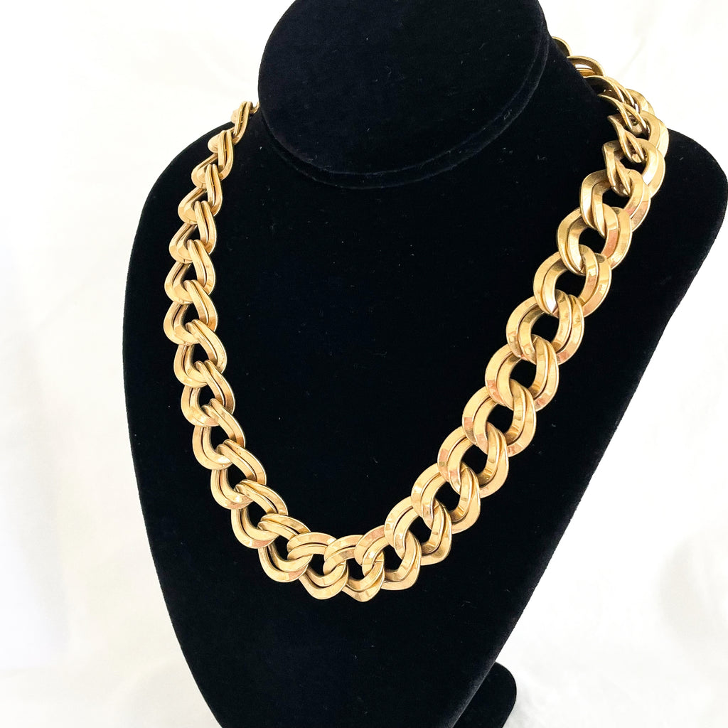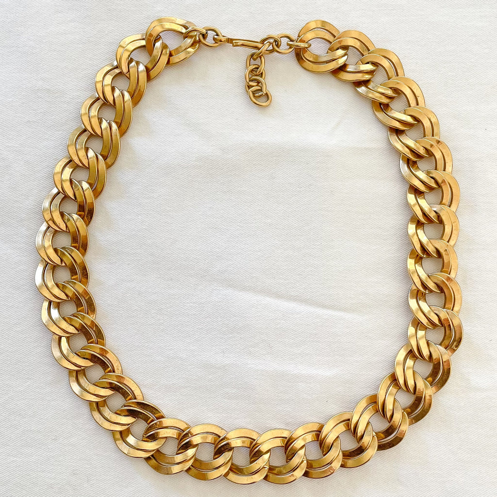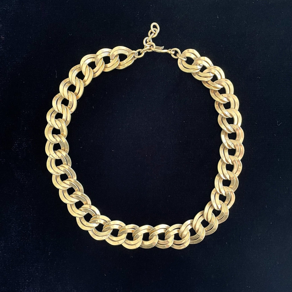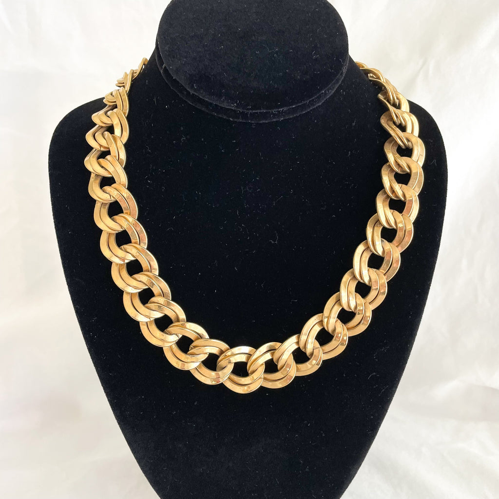 Vintage Monet gold tone double link chain necklace. Choker style fit.