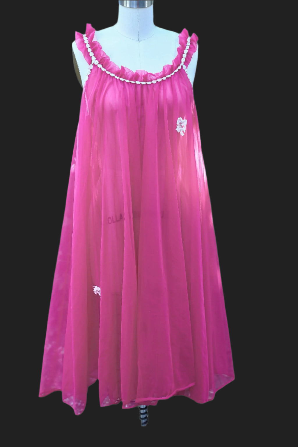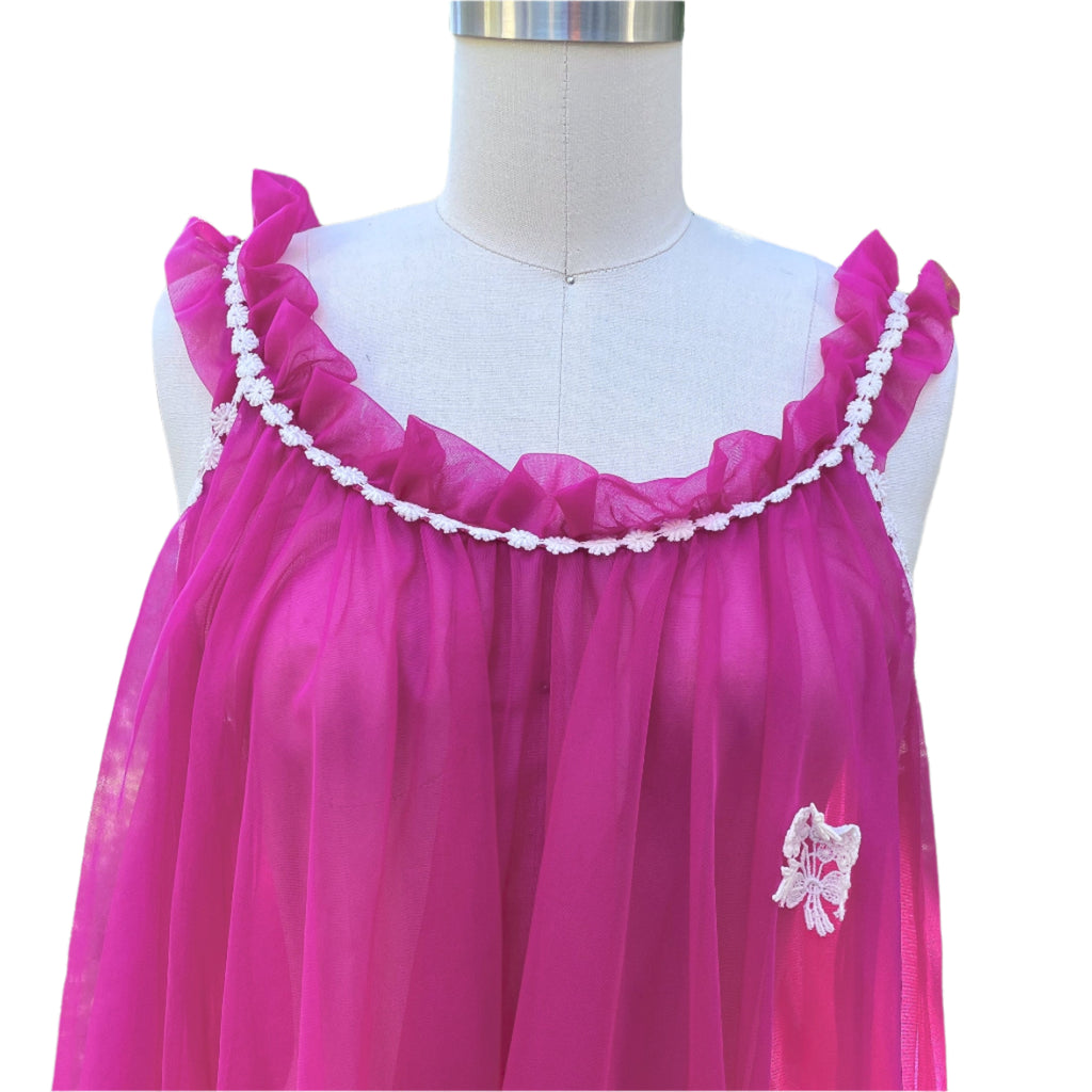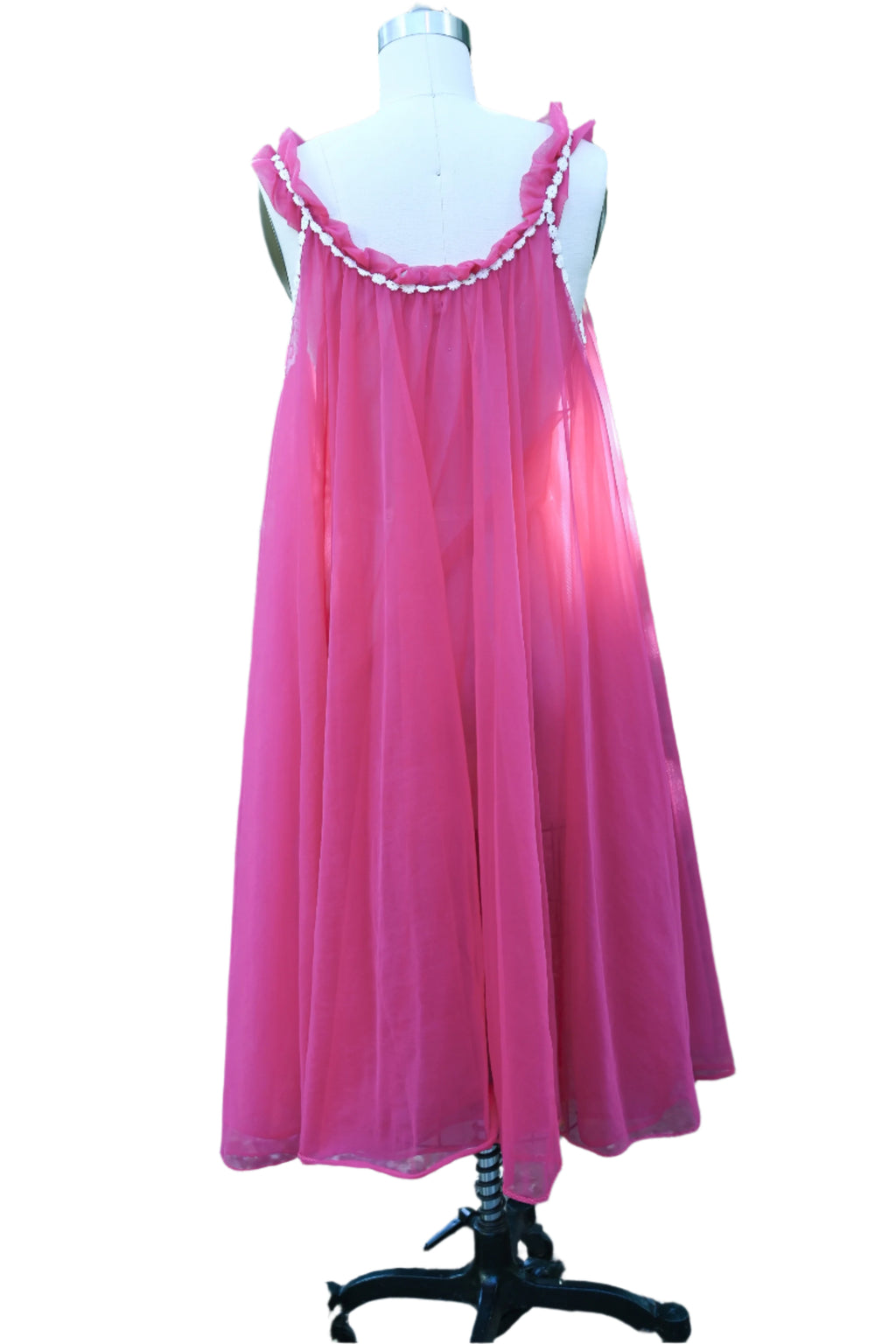 Beautiful double layer sheer night gown with white trim.