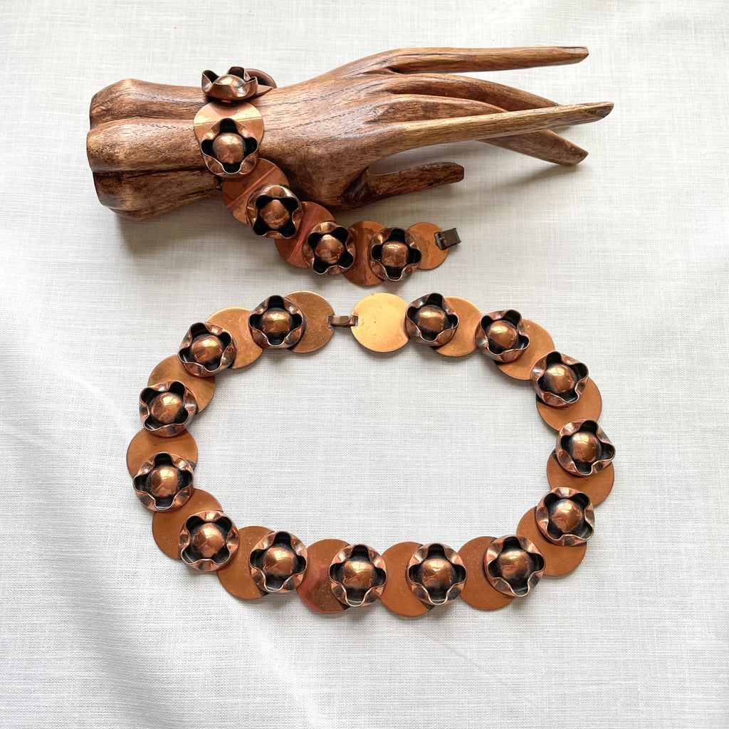 Vintage MCM Renoir copper necklace and bracelet 2 piece set.