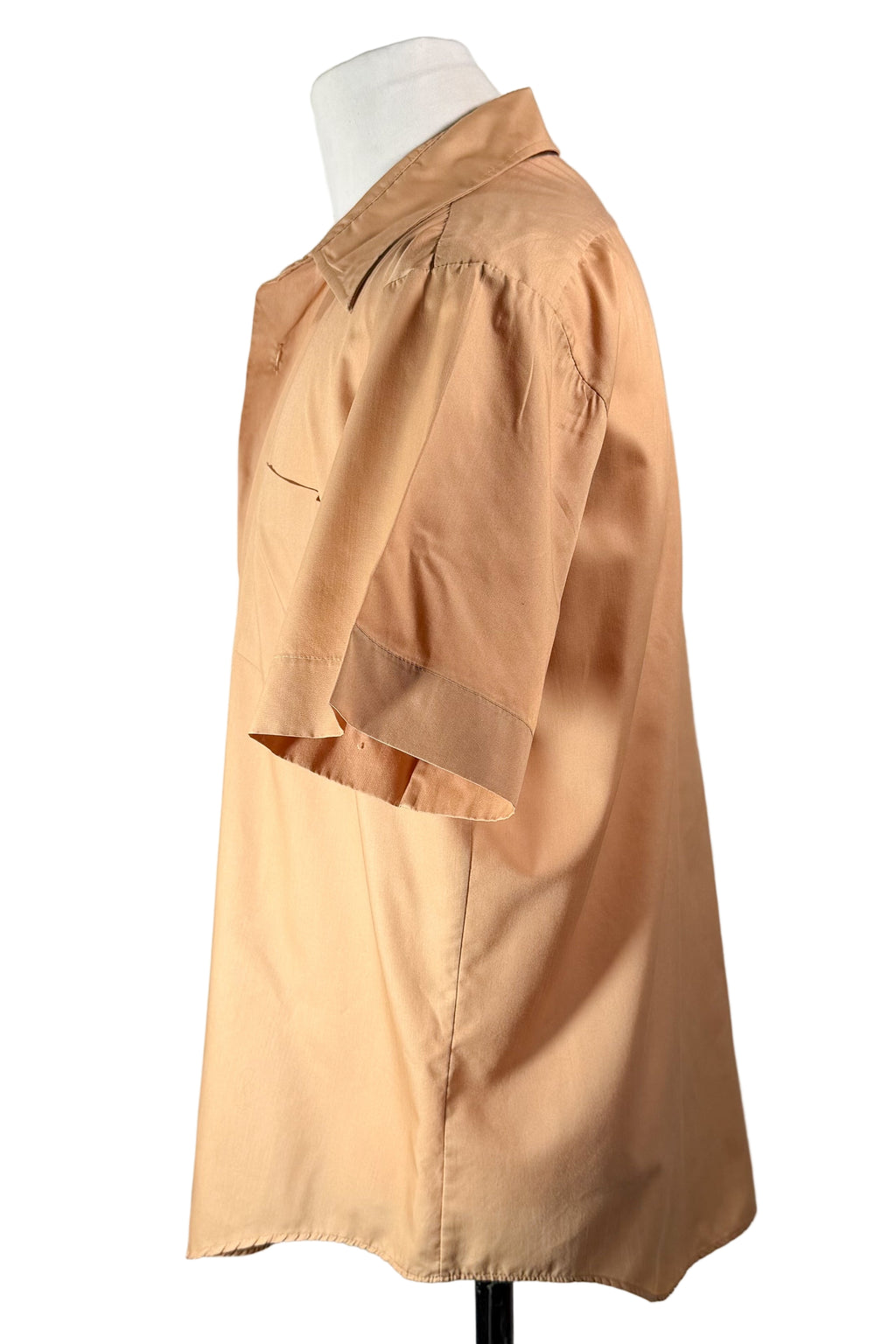Peachy tan color. Lightweight fabric. Dacron Polyester, Cotton.